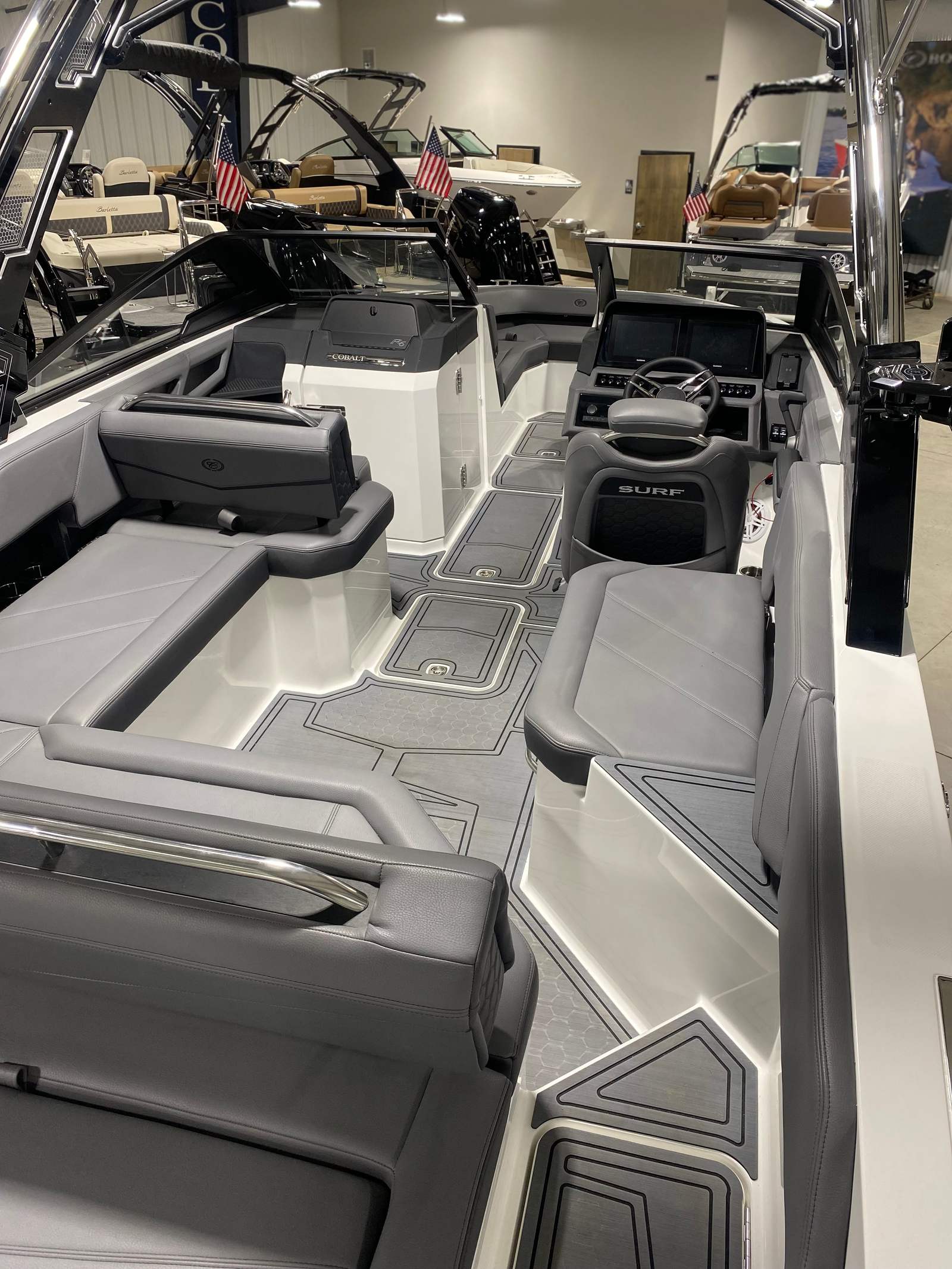 The Cobalt R6 Surf shines in a variety of scenarios. For families, it’s the perfect platform for weekend outings, picnics on the water, and teaching kids to wakeboard or tube. Watersports enthusiasts will appreciate the powerful engine, wakeboard racks, and rearview mirror, making it easy to enjoy surfing, wakeboarding, and more.If you’re looking for a luxury getaway, the R6 Surf’s spacious design and premium features create an inviting environment for relaxation and entertainment. Host sunset cruises with friends, explore hidden coves, or simply unwind on the comfortable seating while taking in the views. The boat’s versatility ensures it adapts to your needs, whether you’re seeking adventure or tranquility.