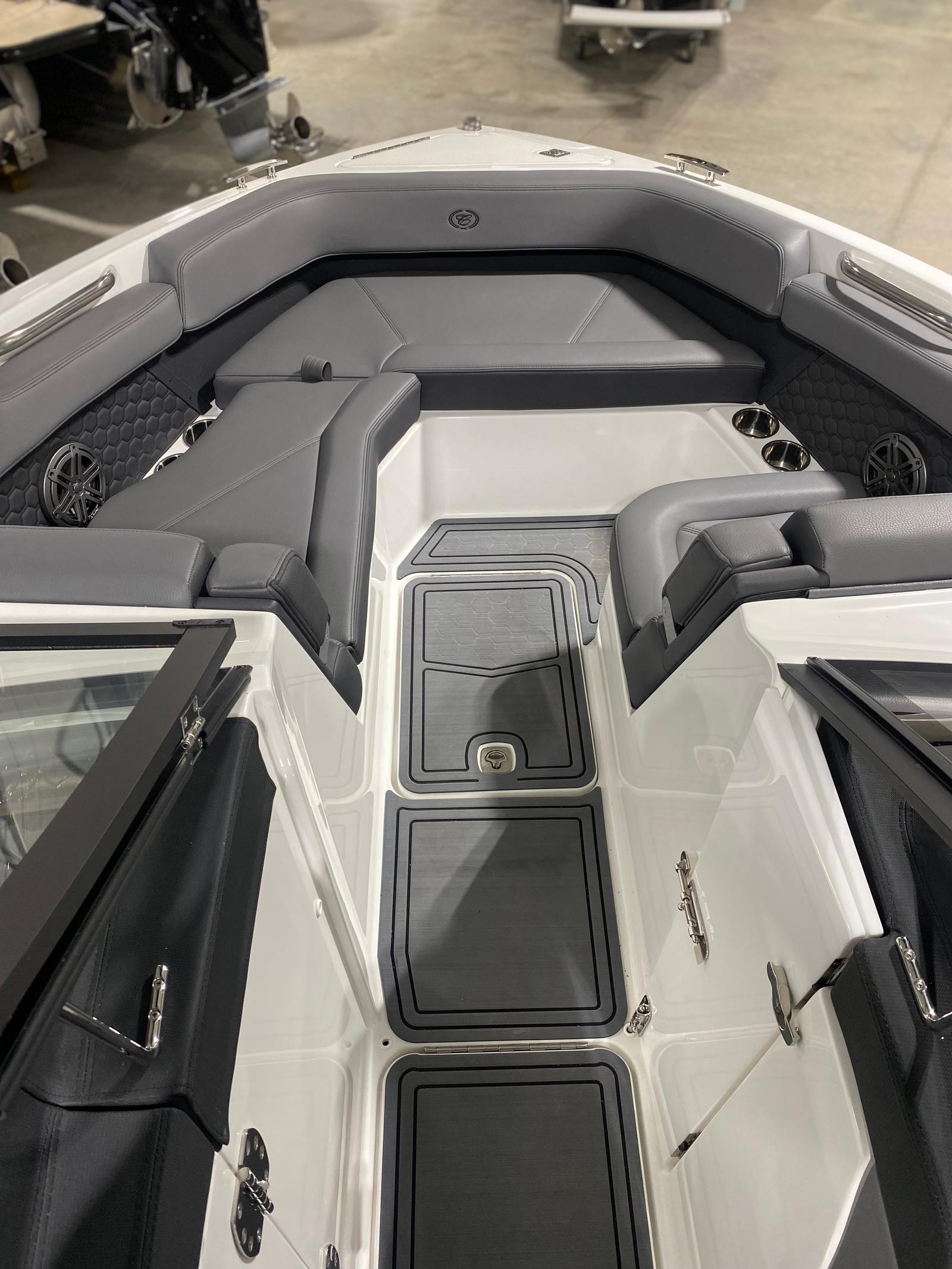 Powering the Cobalt R6 Surf is a single engine delivering a remarkable 380 horsepower. This robust engine ensures smooth acceleration, impressive top speeds, and reliable handling in a variety of water conditions. The R6 Surf’s performance metrics are tailored for both adrenaline-pumping watersports and leisurely cruises. Whether you’re carving through waves or gliding across calm waters, the R6 Surf offers a dynamic boating experience that’s both exhilarating and comfortable. The advanced hull design further enhances stability and maneuverability, making this Bowrider a joy to captain.