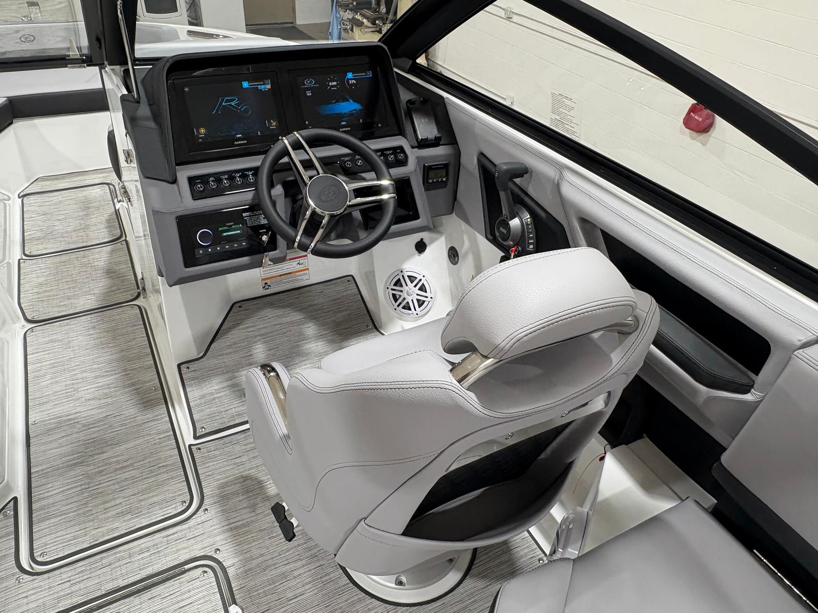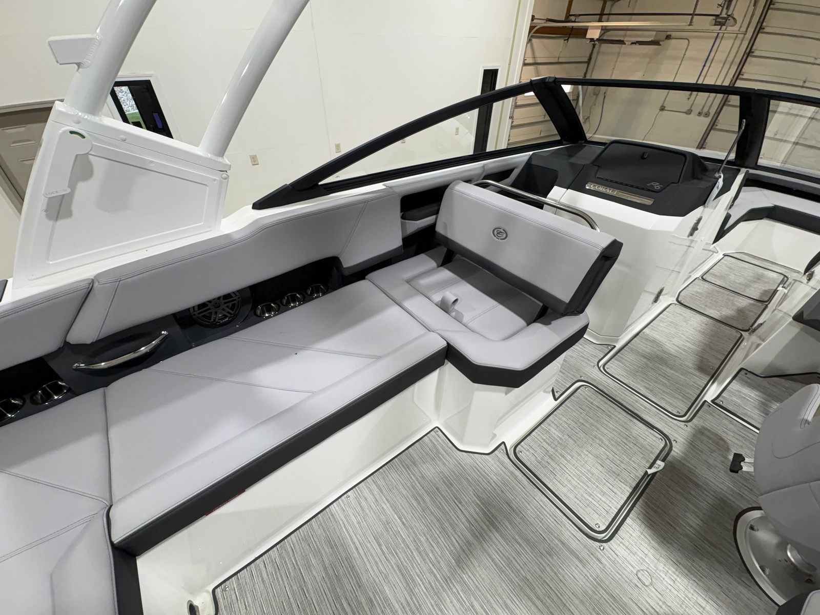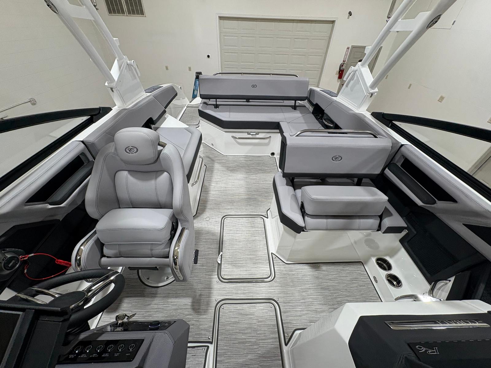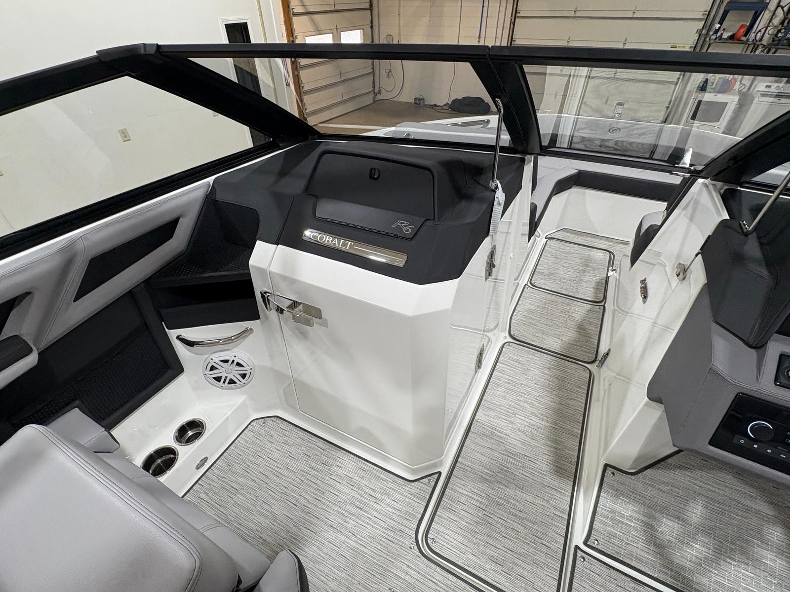 The 2026 Cobalt R6 is packed with special features that enhance both functionality and enjoyment. The White (Folding) Arch, E2 with Capt/Navy Bimini, offers shade and style, while the stainless steel docking lights provide both safety and a touch of sophistication during evening outings. The floor covering in Seagrass, Silver Ash, is not only visually appealing but also comfortable underfoot and easy to maintain. The Frost/Slate interior is designed for both durability and luxury, ensuring every passenger rides in comfort.The glass cockpit, featuring dual Garmin 8610 displays, puts advanced navigation and control at your fingertips, making every journey intuitive and enjoyable. LED interior accent lighting with customizable R/G/B colors sets the perfect mood for any occasion, from lively gatherings to peaceful sunset cruises. The included mooring cover helps protect your investment, while the folding arch adds versatility for storage and transport.