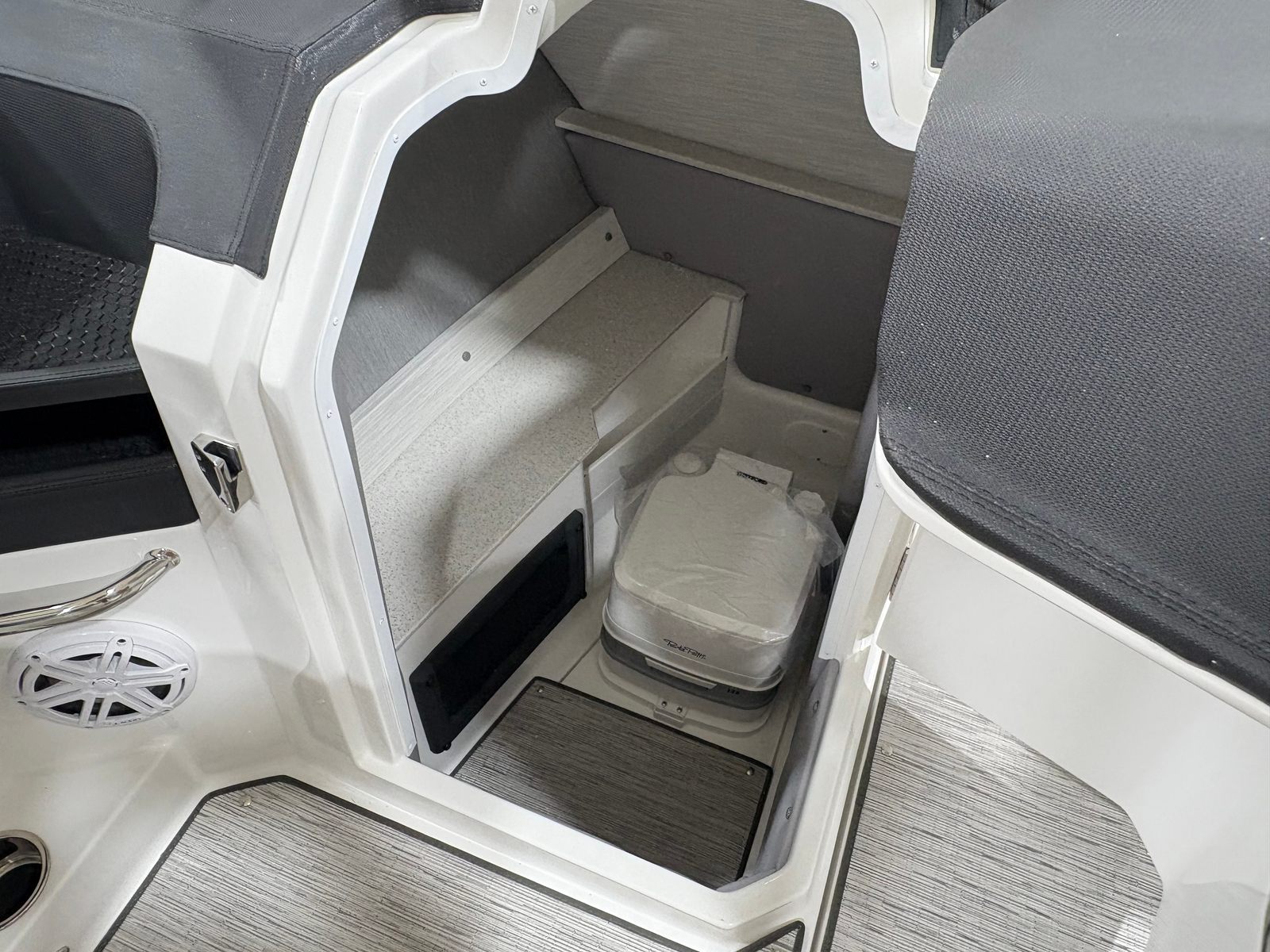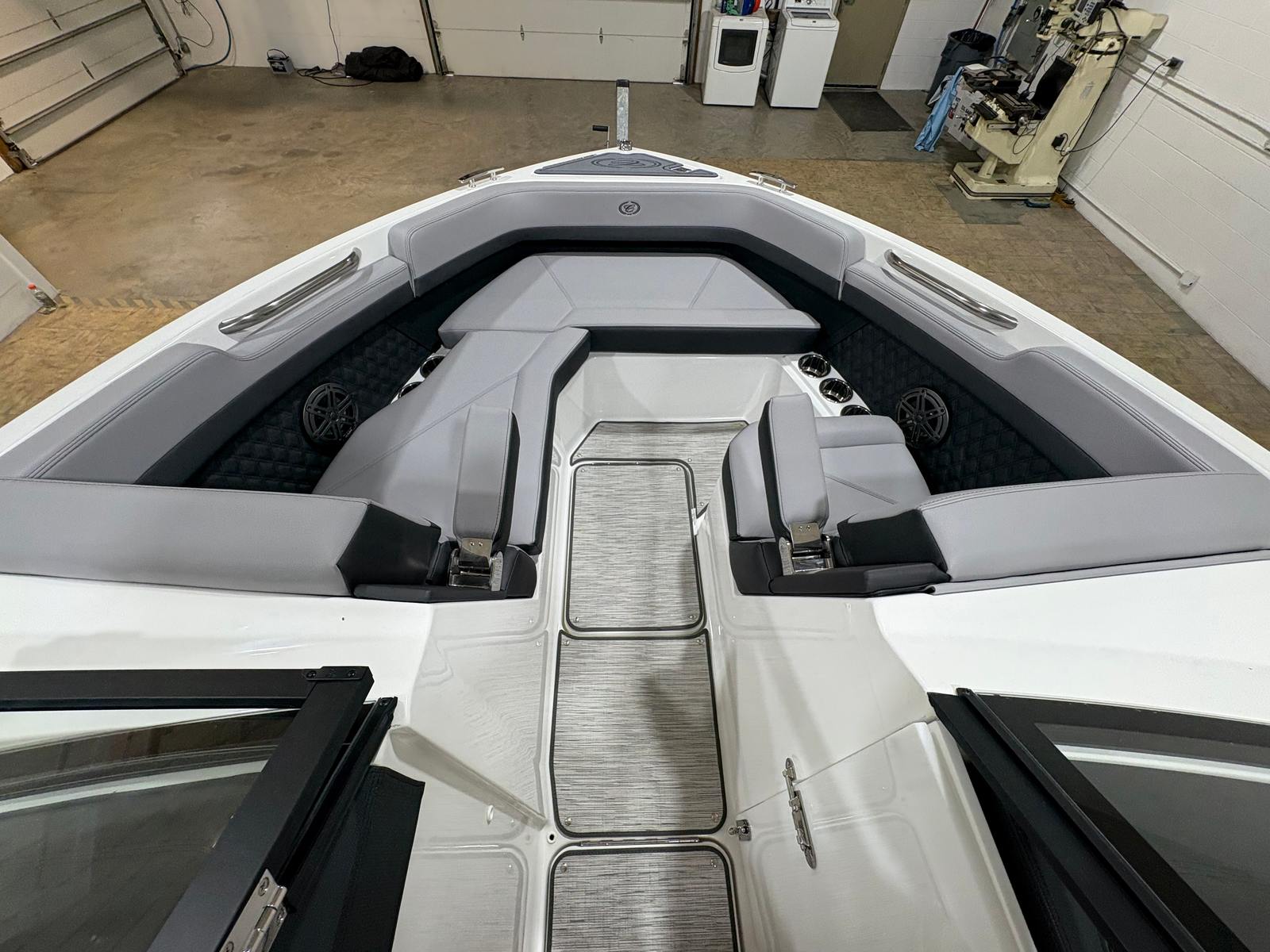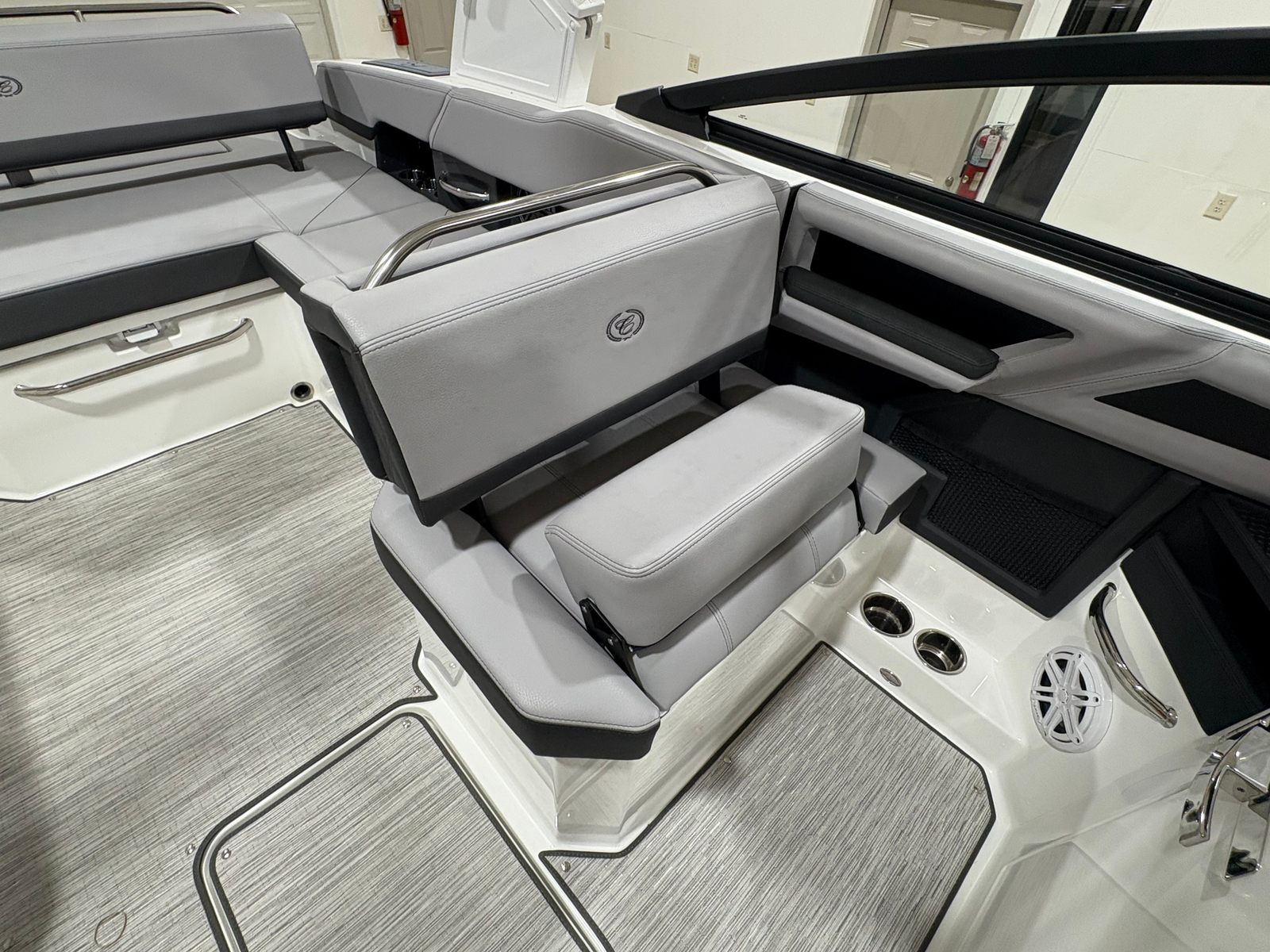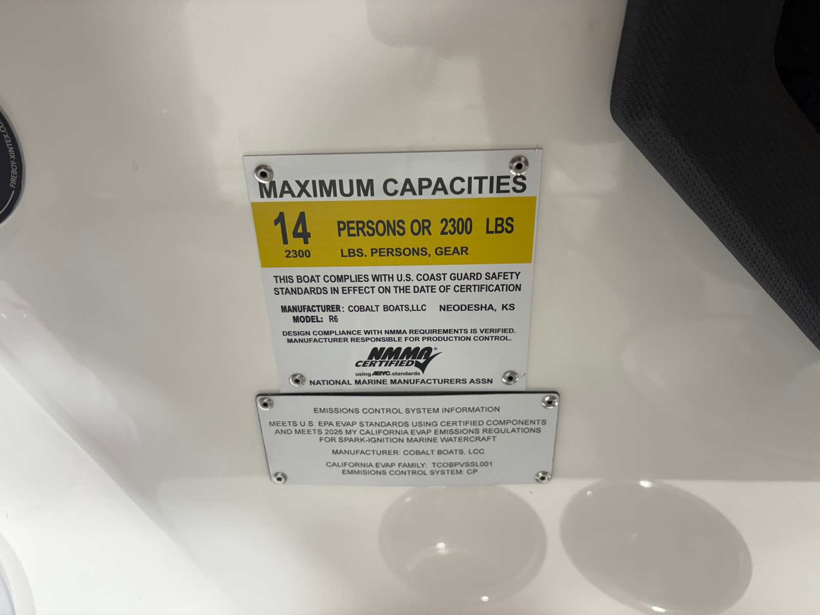 The 2026 Cobalt R6 is packed with special features that enhance both functionality and enjoyment. The White (Folding) Arch, E2 with Capt/Navy Bimini, offers shade and style, while the stainless steel docking lights provide both safety and a touch of sophistication during evening outings. The floor covering in Seagrass, Silver Ash, is not only visually appealing but also comfortable underfoot and easy to maintain. The Frost/Slate interior is designed for both durability and luxury, ensuring every passenger rides in comfort.The glass cockpit, featuring dual Garmin 8610 displays, puts advanced navigation and control at your fingertips, making every journey intuitive and enjoyable. LED interior accent lighting with customizable R/G/B colors sets the perfect mood for any occasion, from lively gatherings to peaceful sunset cruises. The included mooring cover helps protect your investment, while the folding arch adds versatility for storage and transport.