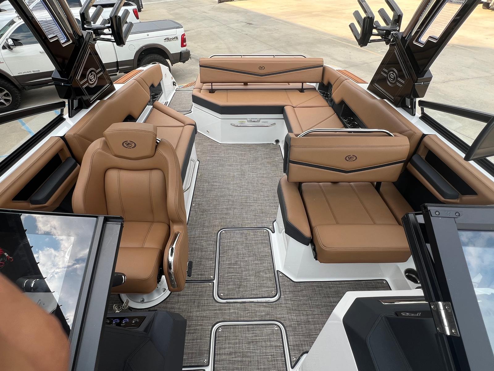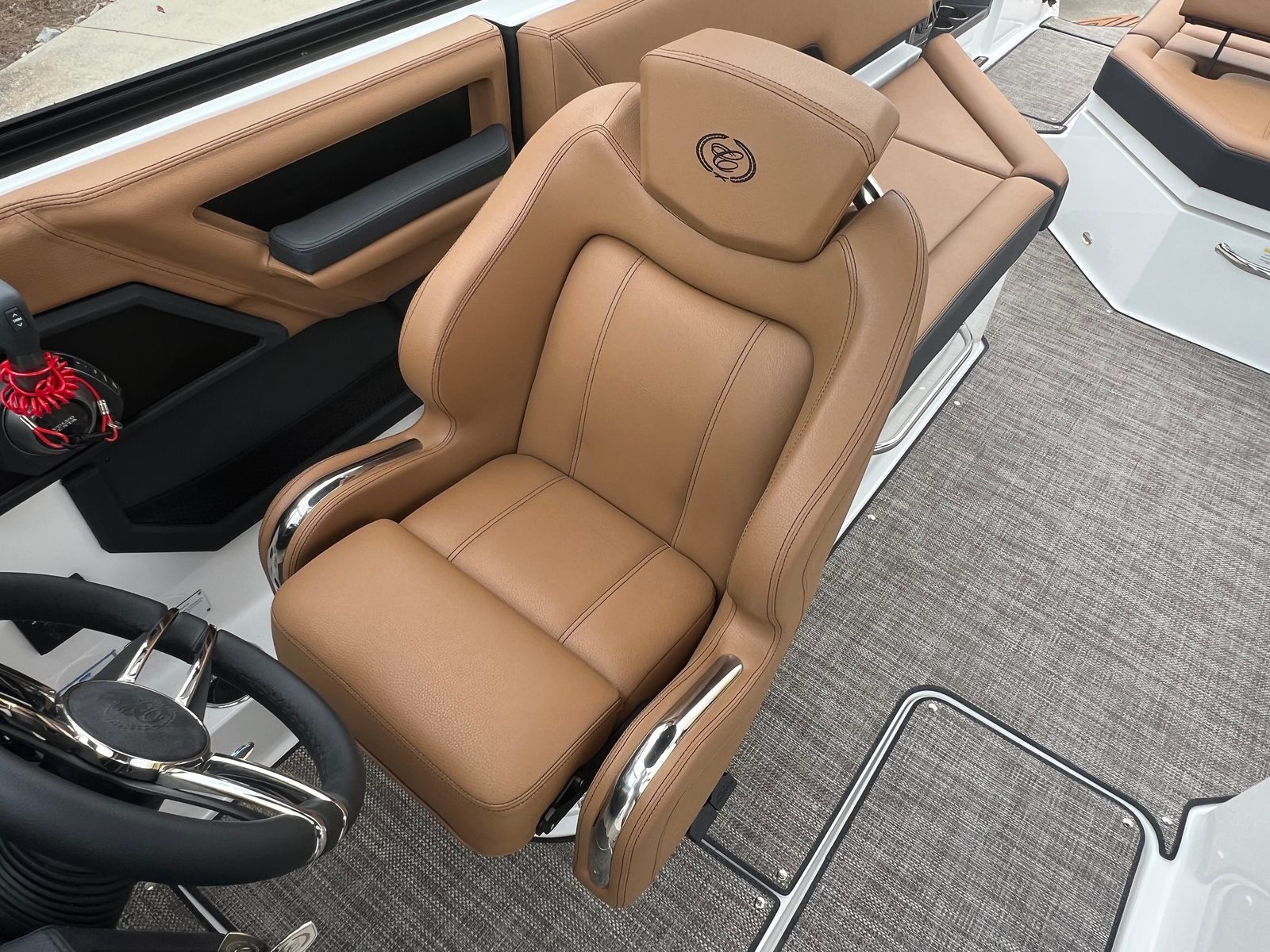 The 2026 Cobalt R8 Surf Bowrider is a true masterpiece, measuring an impressive 27 feet in length. This spacious vessel offers ample room for family, friends, and all your favorite water activities. The R8 Surf’s bold design is complemented by its striking Hull Bottom in Graphite Gray, accented by Cobalt Letters in Black Satin for a modern, sophisticated look. The interior features a luxurious combination of Caramel, Carbon, and Ebony, creating a welcoming and upscale atmosphere that sets the stage for memorable outings. As a new boat, the R8 Surf promises pristine condition and the latest advancements in marine engineering.