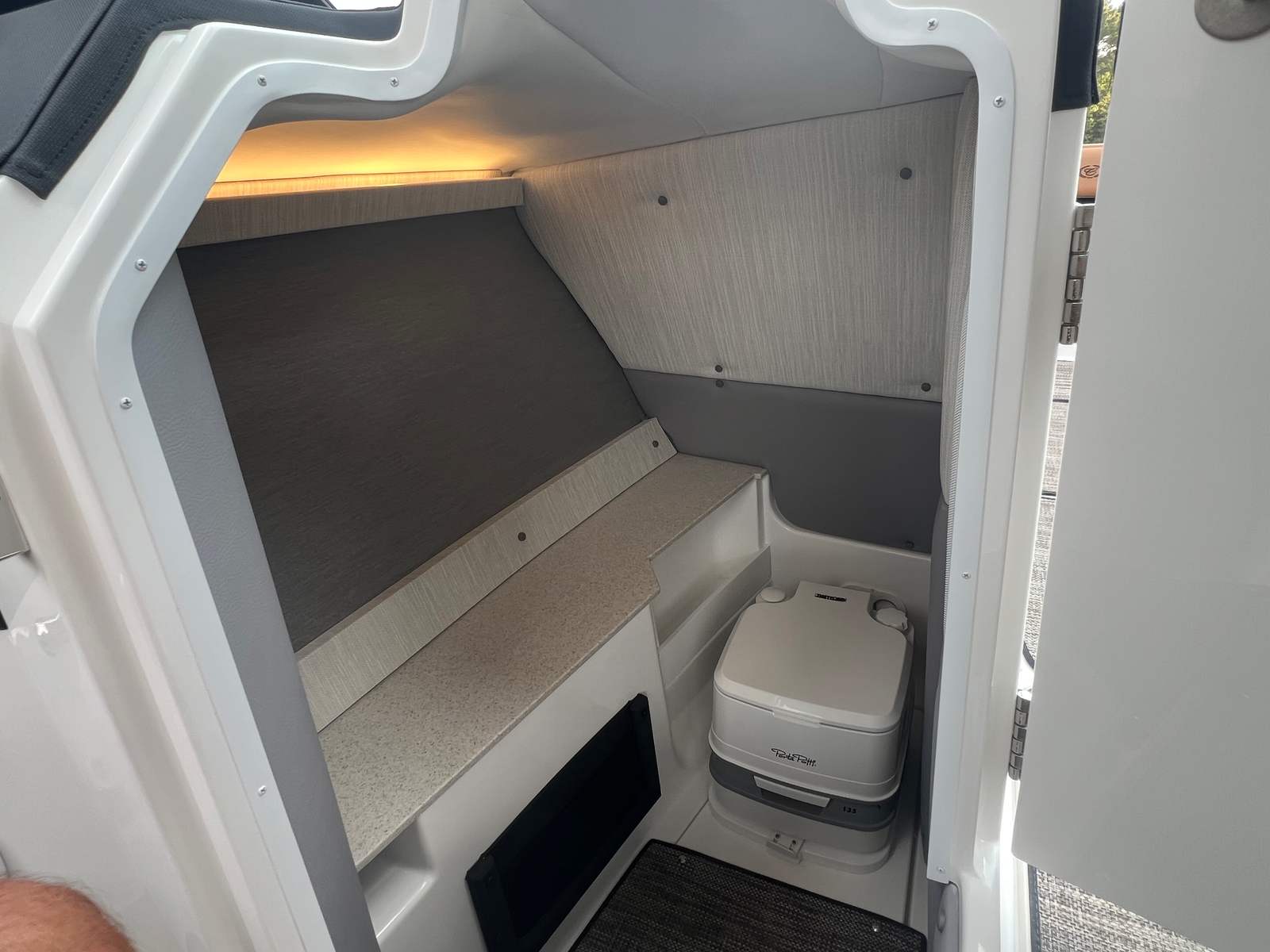 The Cobalt R8 Surf is packed with premium features designed to enhance your time on the water. The EL Arch, Prisma - Black (Folding) with Ebony Bimini offers stylish shade and versatility, while the stainless steel docking lights ensure safe and easy mooring, even after sunset. The floor covering in Seagrass and Raw Umber adds comfort and durability underfoot, perfect for barefoot relaxation or lively gatherings. The head with pump out porta potti provides convenience for longer excursions, and the battery maintainer/charger (110V) keeps your systems powered and ready for action. The glass cockpit with Dual Volvo 8610 displays delivers advanced navigation and system monitoring, putting all the information you need at your fingertips.