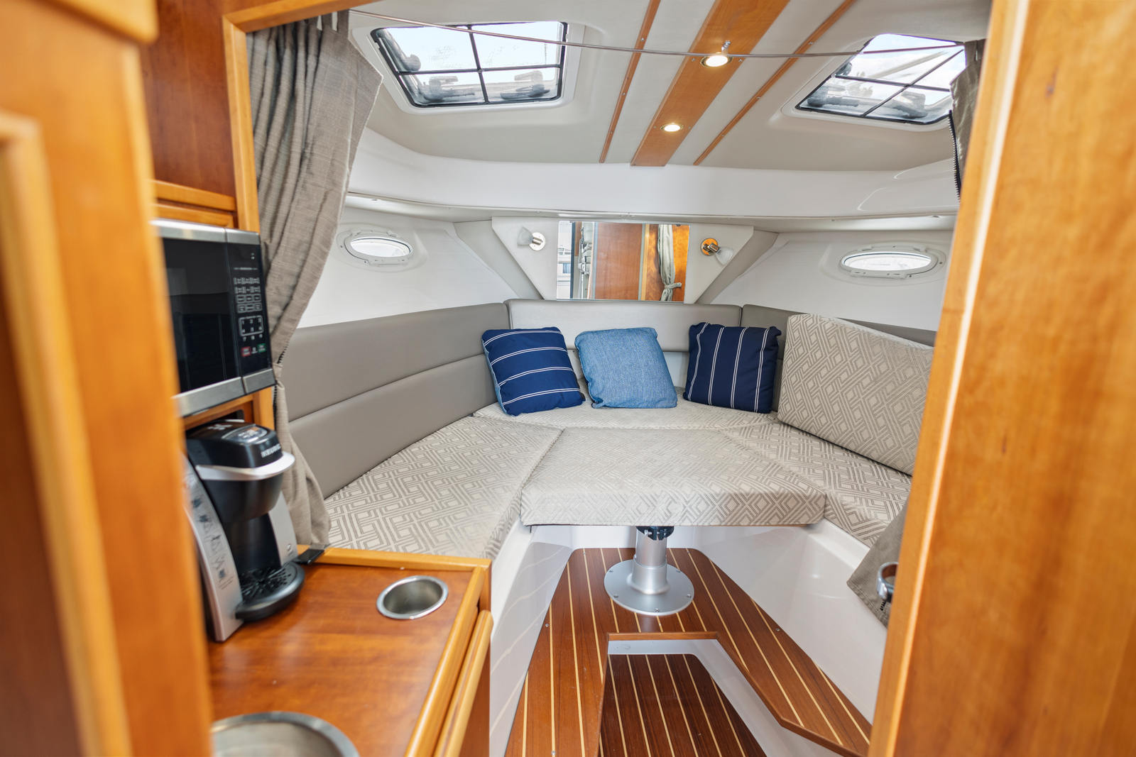 Powering this impressive cruiser are three robust engines, each delivering 260 horsepower. With only 179 engine hours, this Cutwater 28LE offers plenty of life and reliability for future excursions. The triple engine setup ensures smooth acceleration, responsive handling, and the ability to cruise effortlessly at a variety of speeds. Whether you’re navigating tight marinas or heading out for a day of exploration, the performance of this Cutwater boat for sale is sure to impress. The engines provide ample power for towing water toys, reaching distant destinations, or simply enjoying a swift, comfortable ride.