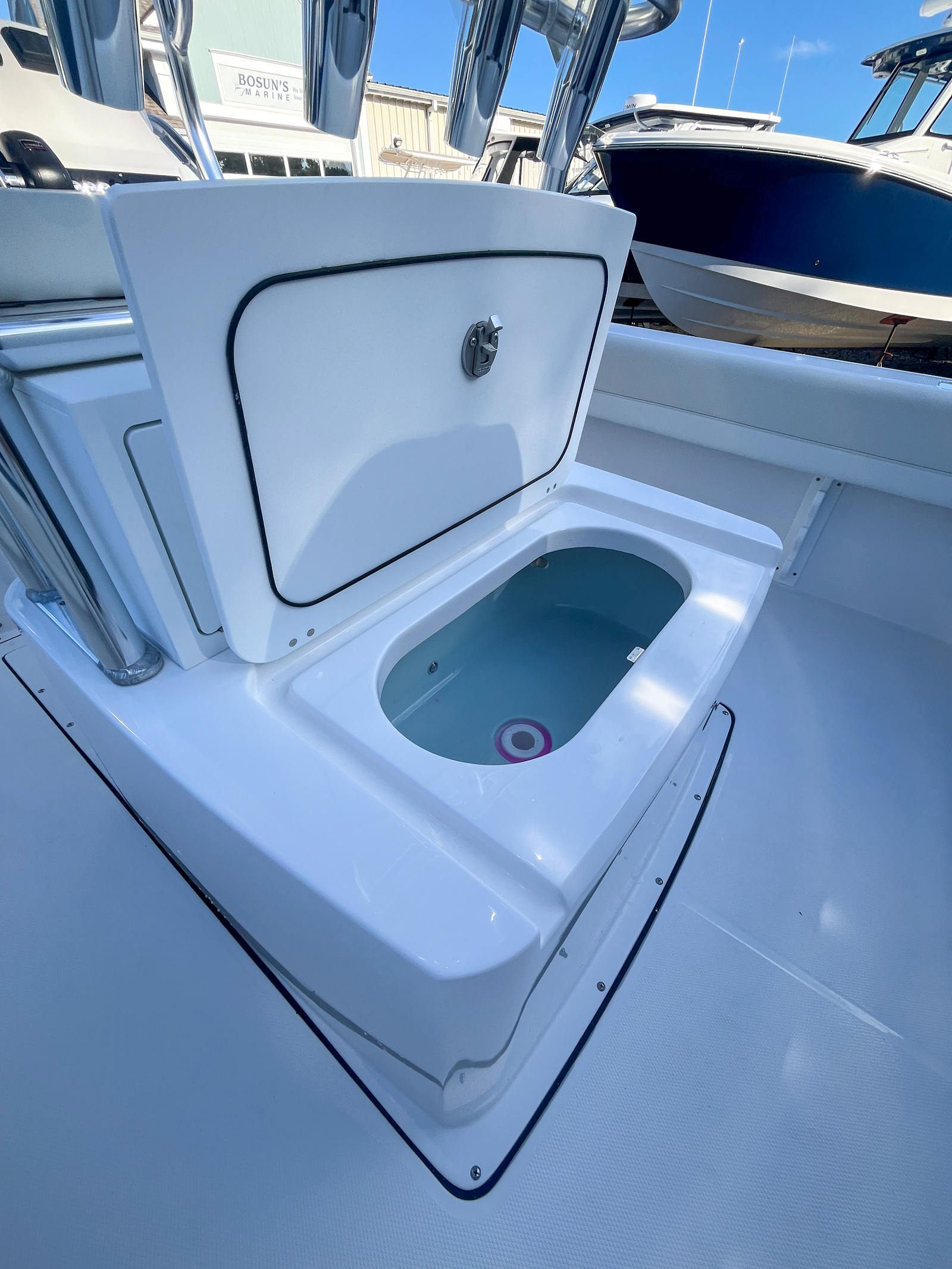 - Fishing Package 180CC - 17 Gallon Recirculating Baitwell, Raw Water Washdown, Extra Gunwale Rod Holders (2), Under Gunwale Rod Holders, Built in Tackle Box