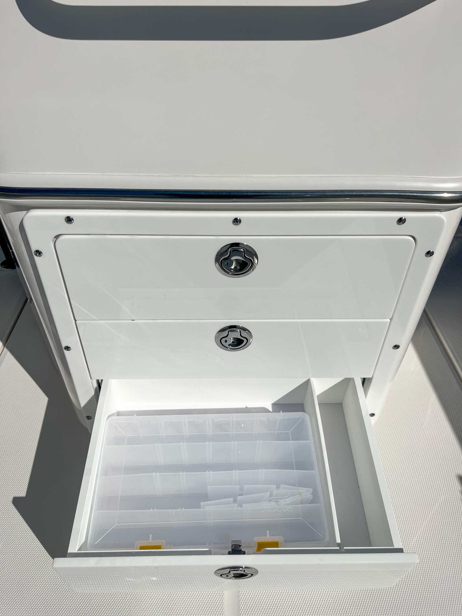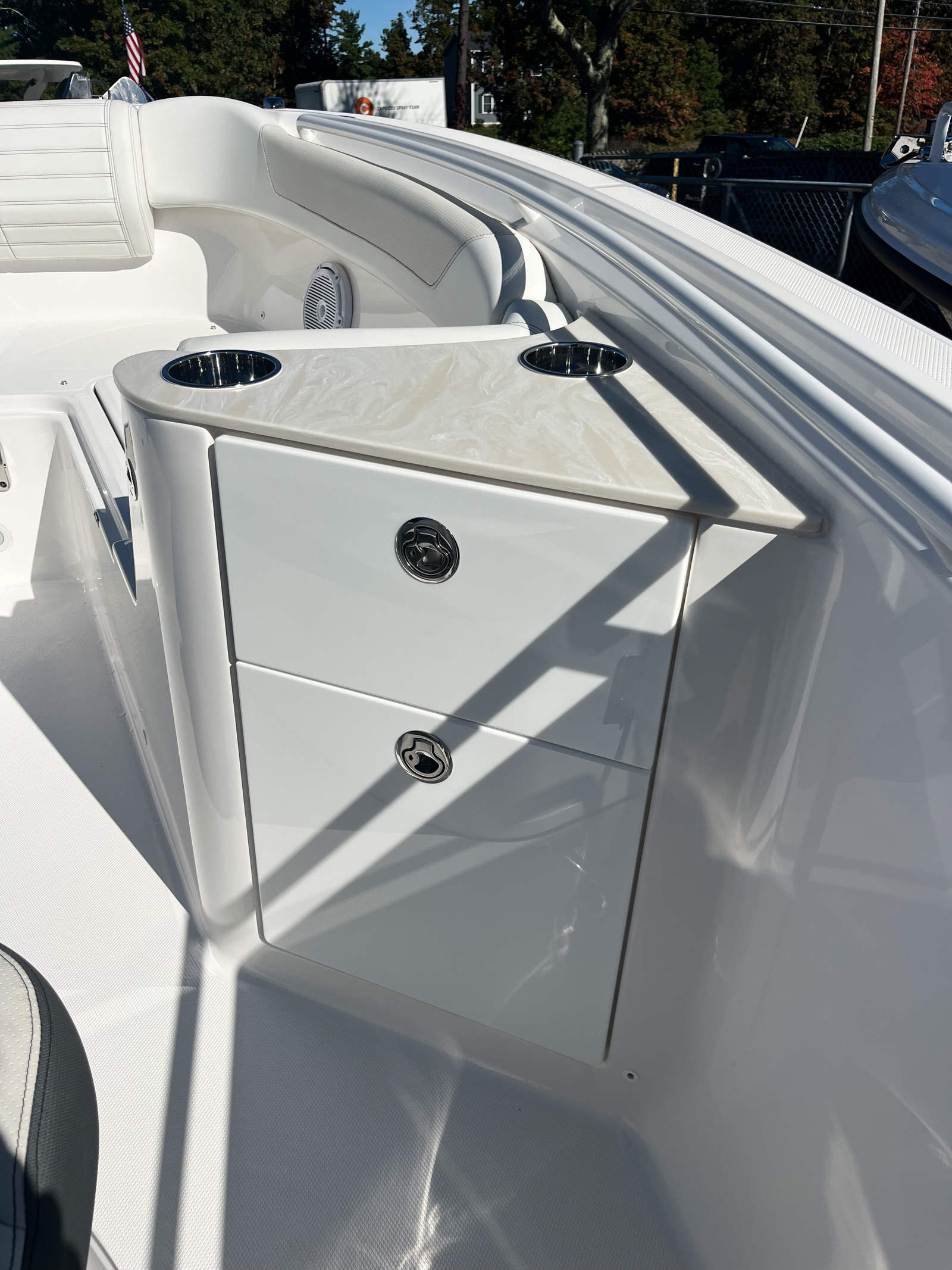 In summary, the 2025 Edgewater 262 CC is a remarkable Center Console boat for sale that combines powerful dual Yamaha engines, advanced navigation technology, and a host of premium features to deliver an unparalleled boating experience. With its all-white hull, color-matched hardtop, stainless steel rub rail, and thoughtfully designed prep station, this Edgewater boat for sale offers both style and substance. The spacious layout, comfortable seating, and practical storage solutions make it ideal for family outings, fishing trips, and luxury getaways alike. If you’re ready to elevate your time on the water with a boat that offers exceptional performance, comfort, and versatility, the Edgewater 262 CC is the perfect choice. Contact your local dealer today to learn more about this outstanding Center Console boat and start planning your next adventure.