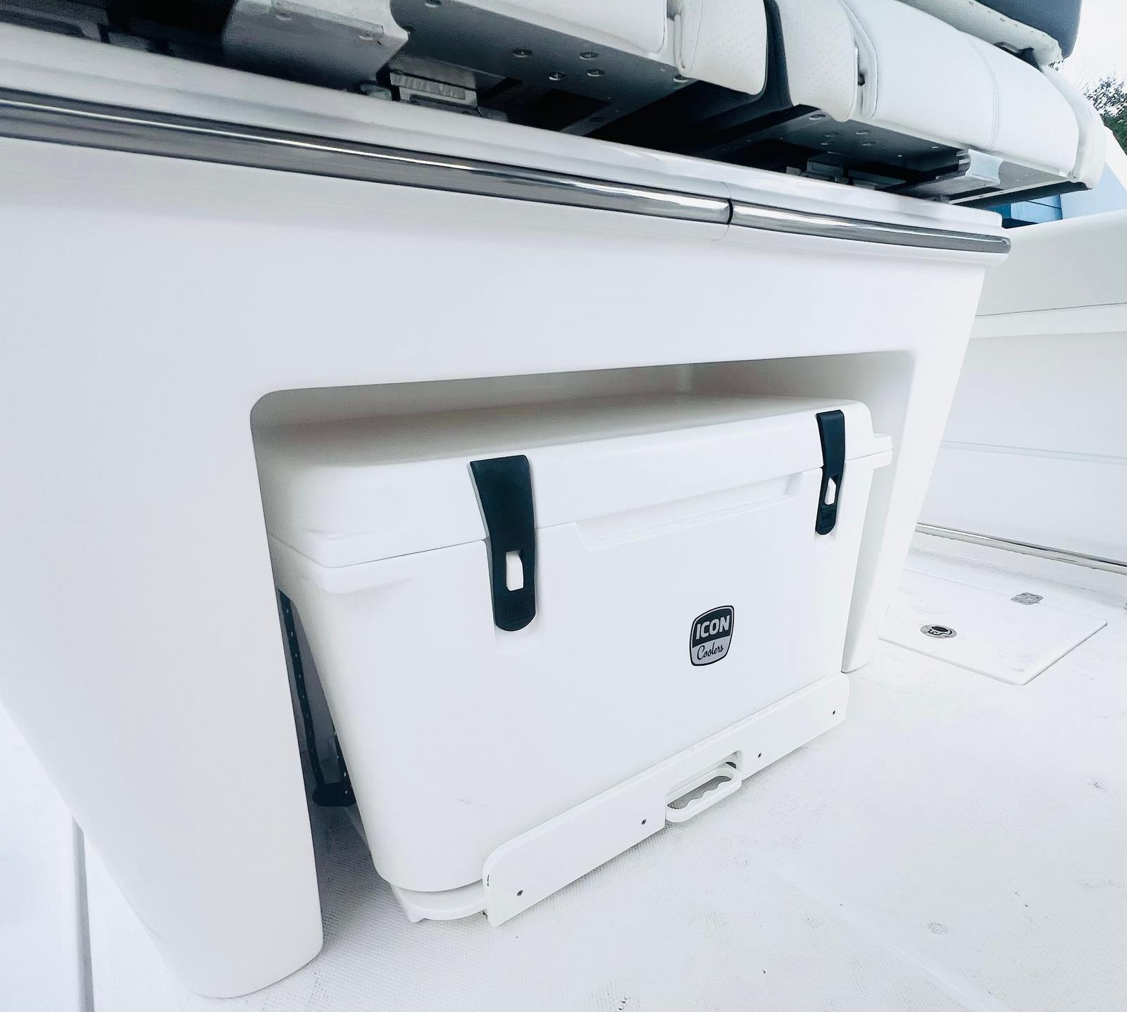 - Powder Coated Leaning Post White Bench Seating, ICON 50 Cooler w/Slide