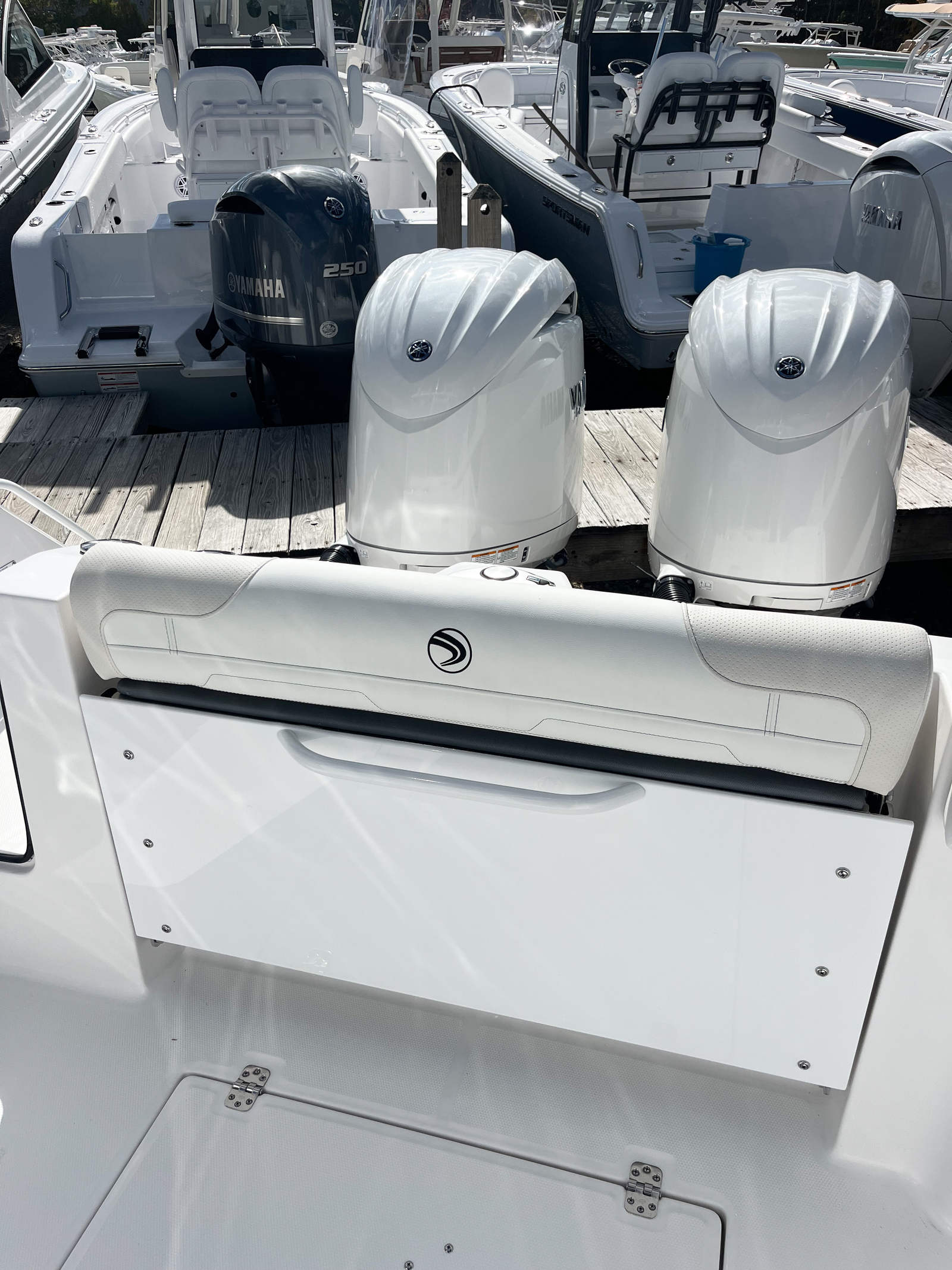 Powering the Edgewater 262 CX are dual Yamaha F200XSA2 engines, delivering a combined 400 horsepower for exhilarating performance and reliable maneuverability. These Yamaha White engines are renowned for their smooth operation, fuel efficiency, and advanced technology, ensuring that every outing is both thrilling and economical. The full maneuverability feature allows for precise handling, making docking and navigating tight spaces effortless. Whether you’re cruising at high speeds or enjoying a leisurely ride, the Edgewater 262 CX offers a responsive and enjoyable boating experience.