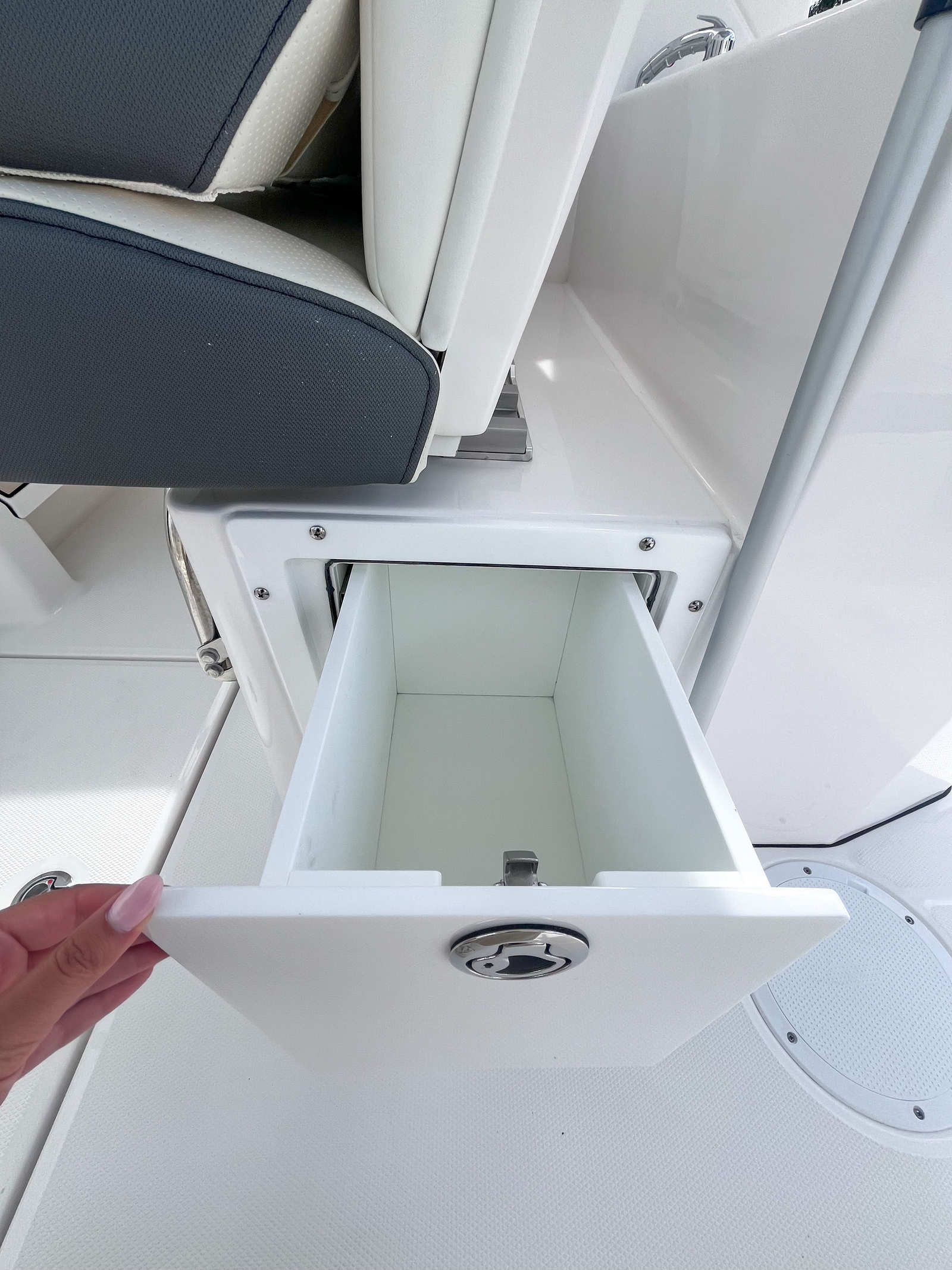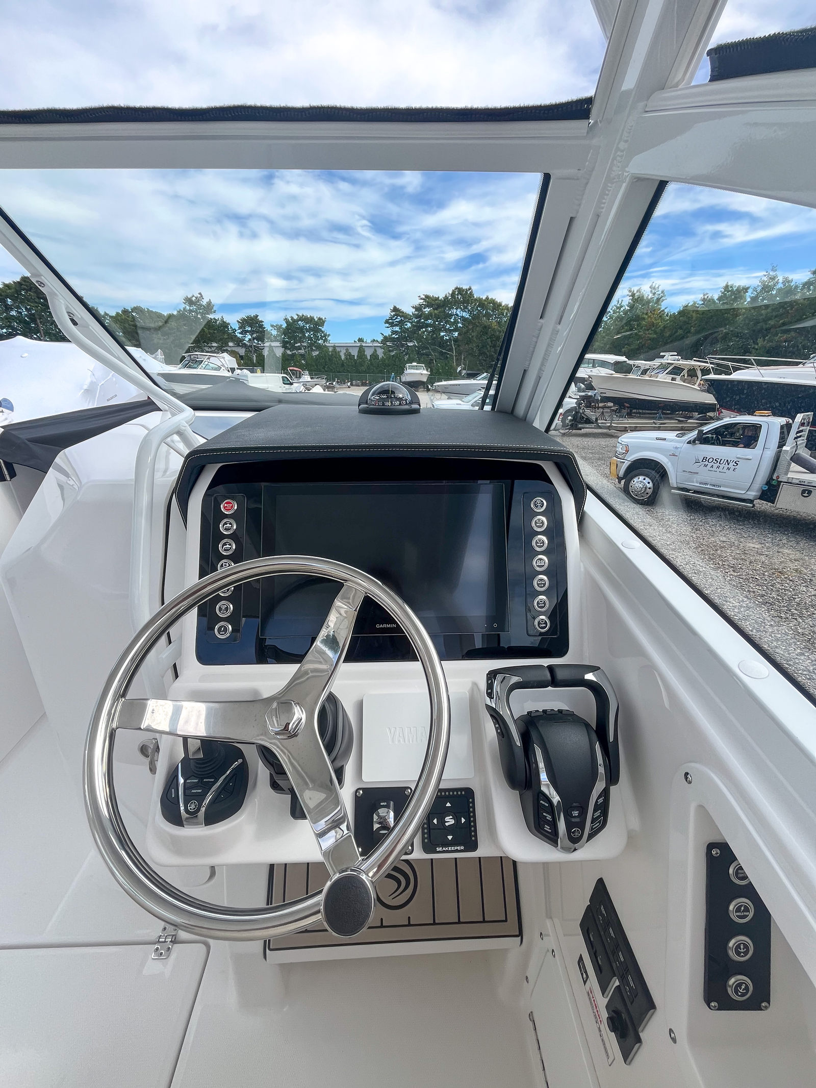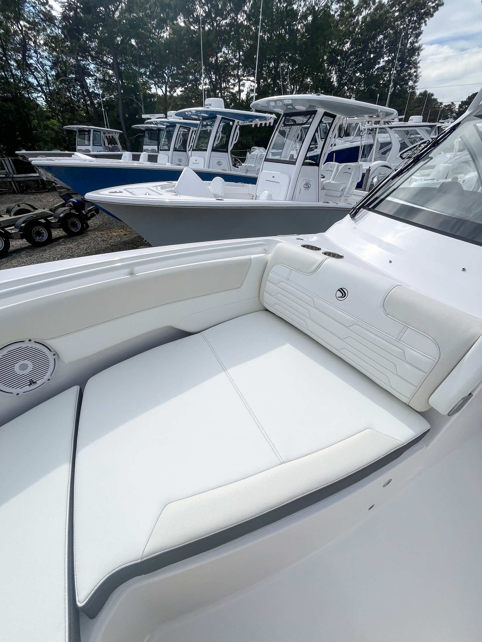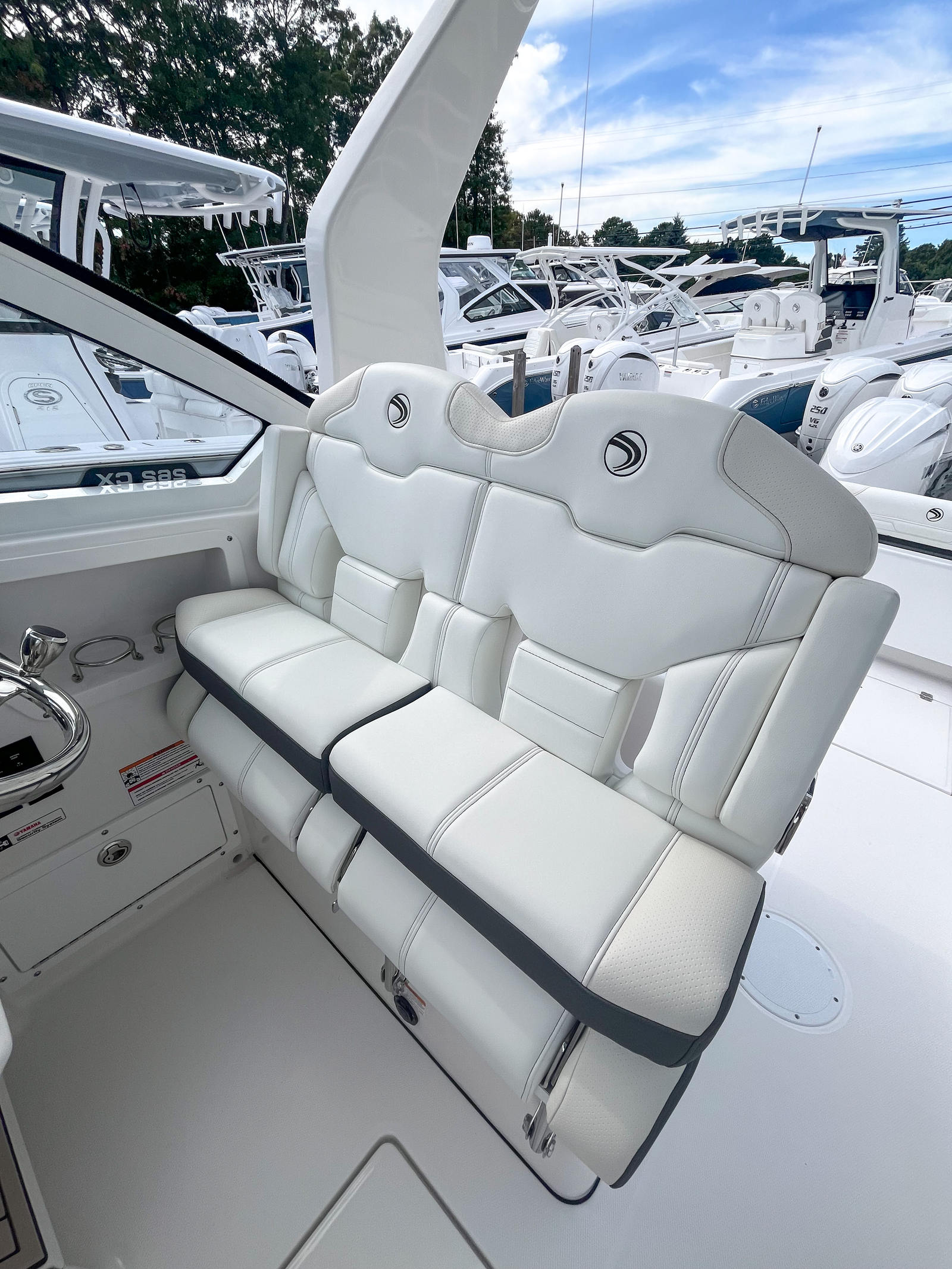 Power and precision are at the heart of the Edgewater 262 CX. Equipped with dual Yamaha F200XSA2 engines, this boat delivers a combined 400 horsepower, ensuring exhilarating acceleration, smooth cruising, and reliable performance in a variety of conditions. The Yamaha White engines not only provide robust power but also add a touch of style to the boat’s overall aesthetic. Full maneuverability is a standout feature, allowing for effortless handling whether you are docking, cruising, or exploring new waters. The Seakeeper Ride 450MM system further enhances stability and comfort, minimizing pitch and roll for a smoother ride even in choppier conditions.