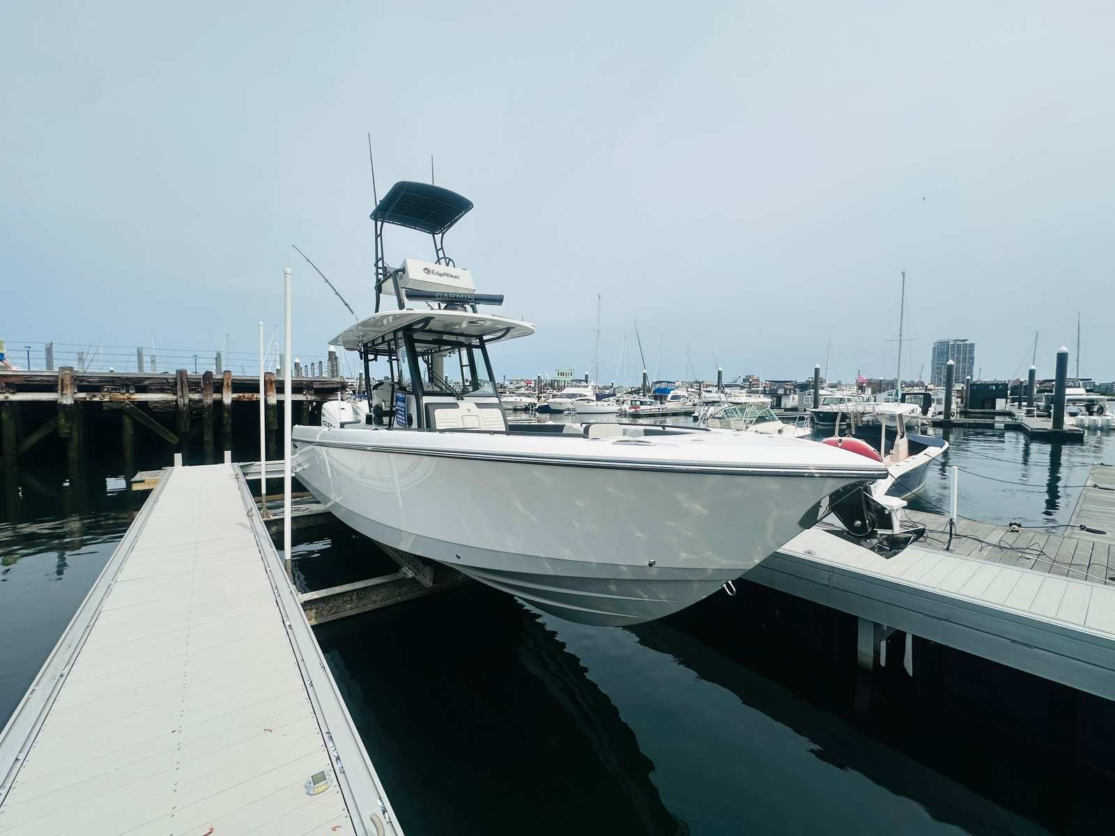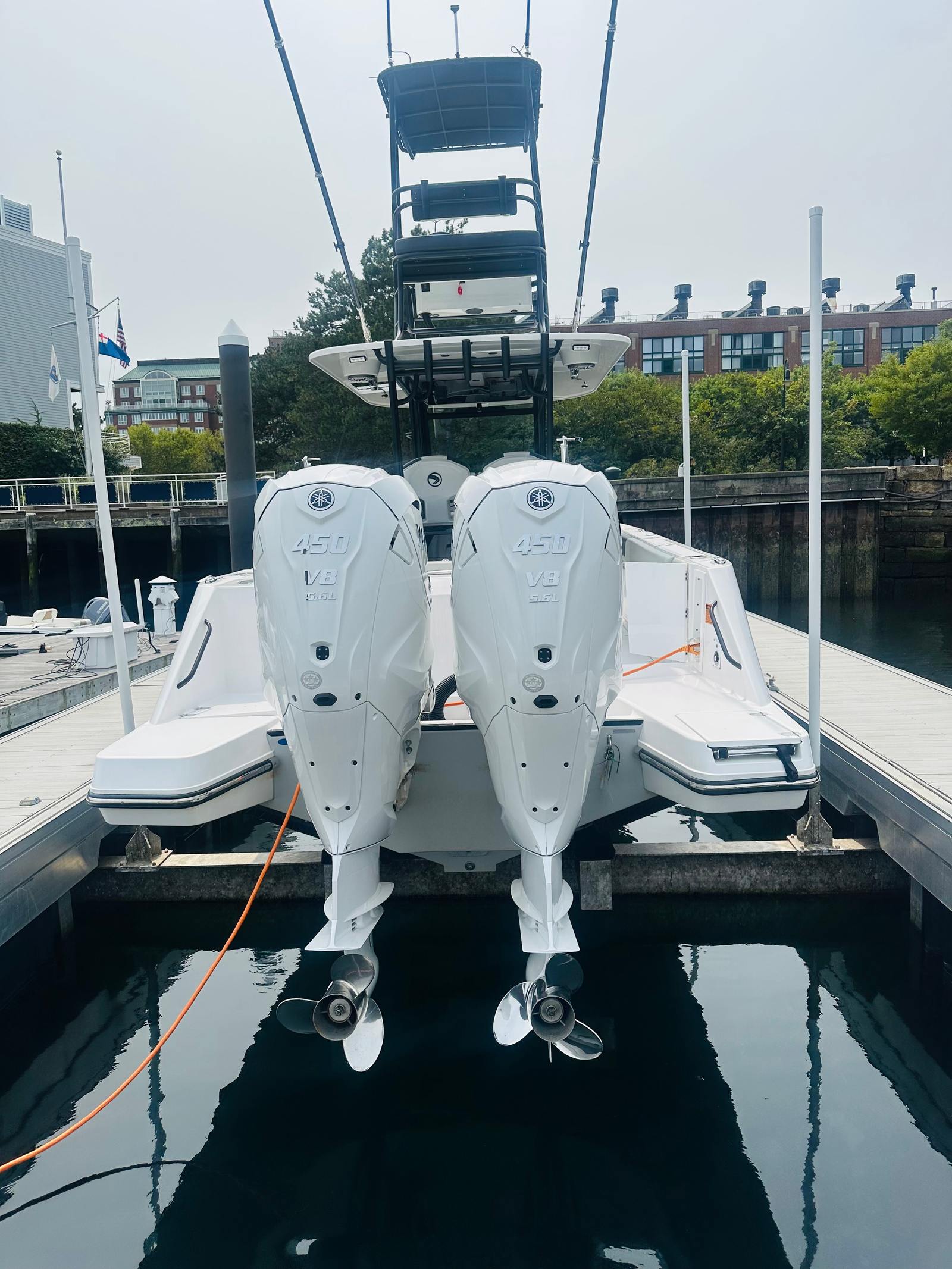 Powering the Edgewater 340 CC are two high-performance engines, delivering a combined 900 horsepower. This impressive setup ensures exhilarating acceleration, smooth cruising, and reliable handling in a variety of conditions. The dual-engine configuration provides not only speed but also enhanced maneuverability and safety, making it easy to navigate busy waterways or open seas. Whether you’re chasing the horizon or cruising along the coast, the 340 CC’s performance capabilities are sure to impress even the most discerning boaters.