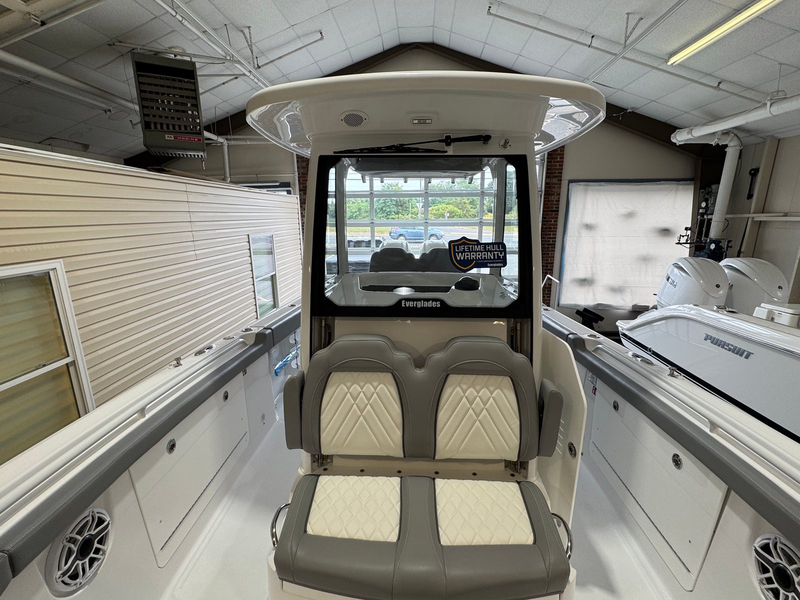 Owning the Everglades 285 CC means embracing a lifestyle of fun, relaxation, and adventure. The spacious layout and thoughtful design make it easy to host family and friends for memorable days on the water. The Mediterranean Bow Shade ensures everyone stays cool and comfortable, while the plush Flint Gray upholstery invites you to unwind and enjoy the ride. The advanced navigation systems and powerful twin engines provide peace of mind, allowing you to focus on making the most of every outing.Fishing enthusiasts will love the dedicated storage solutions, live wells, and rod holders, making it simple to organize gear and keep everything within reach. The Lumitec Light Bar adds safety and convenience, illuminating your path during low-light conditions. With the ladder for side access reboarding door, swimmers and divers can easily get back on board, enhancing the boat’s versatility for all types of water activities.