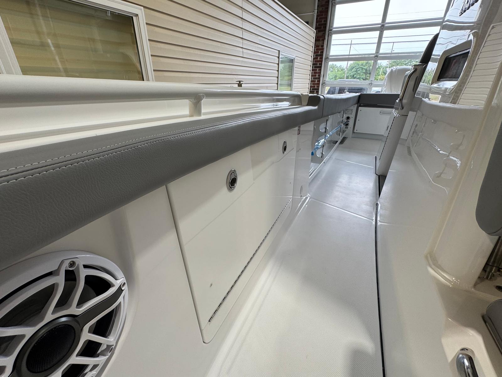 Power and precision come together in the Everglades 285 CC, thanks to its twin Yamaha White 300hp engines with DES (Digital Electric Steering). Boasting a combined 600 horsepower, this Center Console boat is engineered for exhilarating speed, smooth handling, and reliable performance. The advanced Auto Pilot and Joystick for Yamaha EX at the main station ensure effortless navigation, making docking and maneuvering a breeze even in tight spaces. Whether you’re cruising along the coastline or heading offshore for a day of fishing, the 285 CC delivers a responsive and enjoyable ride every time.