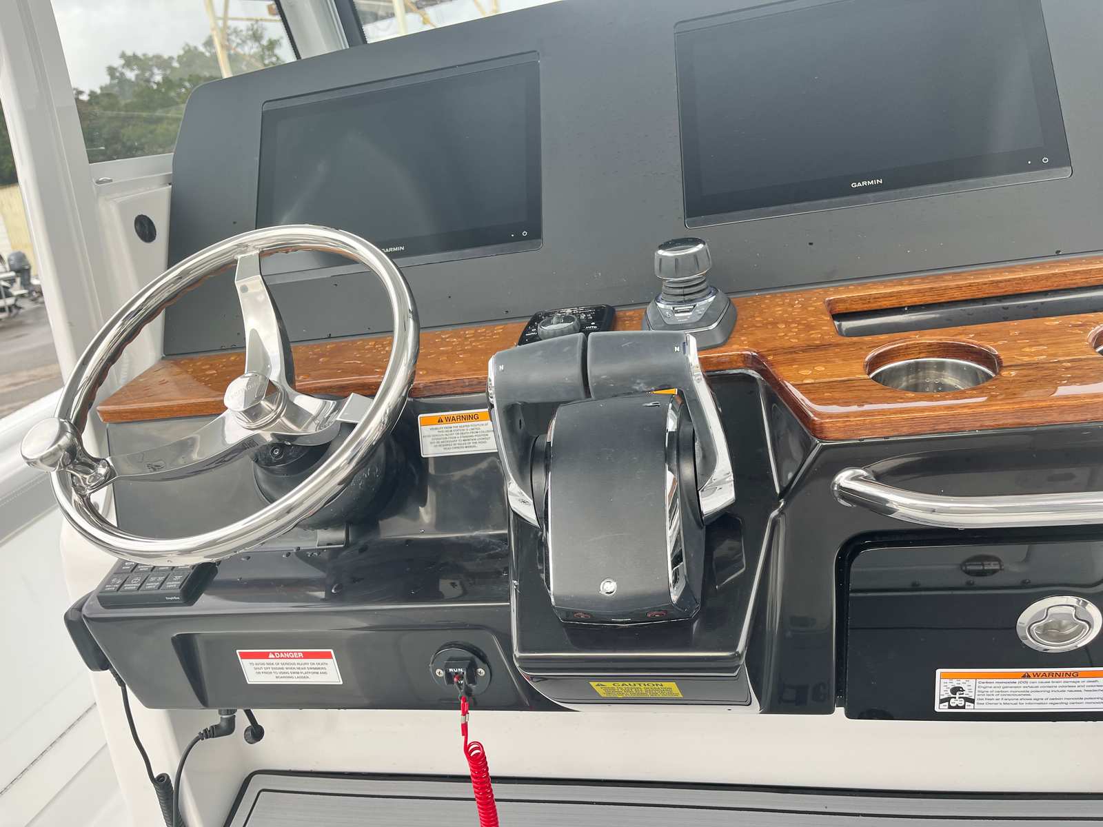 Power and precision are at the heart of the Everglades 315 CC. Equipped with twin Mercury engines delivering a combined 800 horsepower, this center console boat is built for exhilarating speed and smooth handling. With only 36 engine hours, the motors are practically new, promising years of reliable performance. The advanced autopilot and joystick system for twin engines provide effortless maneuverability, making docking and navigating tight spaces a breeze. Whether you are cruising along the coastline or heading offshore for a day of fishing, the 315 CC offers responsive acceleration and stable handling, ensuring a safe and enjoyable ride.