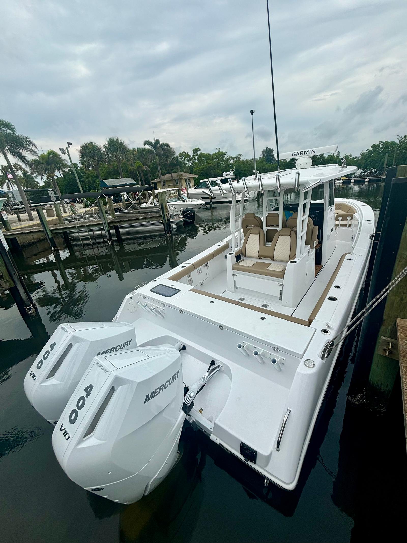 The 2025 Everglades 335 CC is loaded with premium features designed to enhance every aspect of your boating experience. The luxurious Coconut Tan upholstery provides a sophisticated and inviting atmosphere, while the 18-foot collapsible outriggers expand your fishing capabilities, making this boat a top choice for serious anglers. The engine flushing system ensures easy maintenance and longevity for your twin Mercury engines, allowing you to spend more time on the water and less time in the shop.For those who appreciate high-quality entertainment, the JL Speakers LED M6 Upgrade delivers crystal-clear sound, turning every outing into a floating concert. The Lumitec 18-inch lightbar and a set of three spotlights illuminate your path during early morning departures or late-night returns, enhancing safety and visibility. The Seakeeper 2 stabilizer minimizes roll, providing a smooth and comfortable ride even in choppy conditions, while the underwater RGBW lights, transom-mounted, create a mesmerizing ambiance for evening cruises or dockside gatherings.Stay connected and informed with the GXM 54 Sirius XM & Weather Receiver, ensuring you have access to the latest weather updates and entertainment wherever your journey takes you. Every detail of the Everglades 335 CC is thoughtfully designed to deliver maximum enjoyment, convenience, and peace of mind.