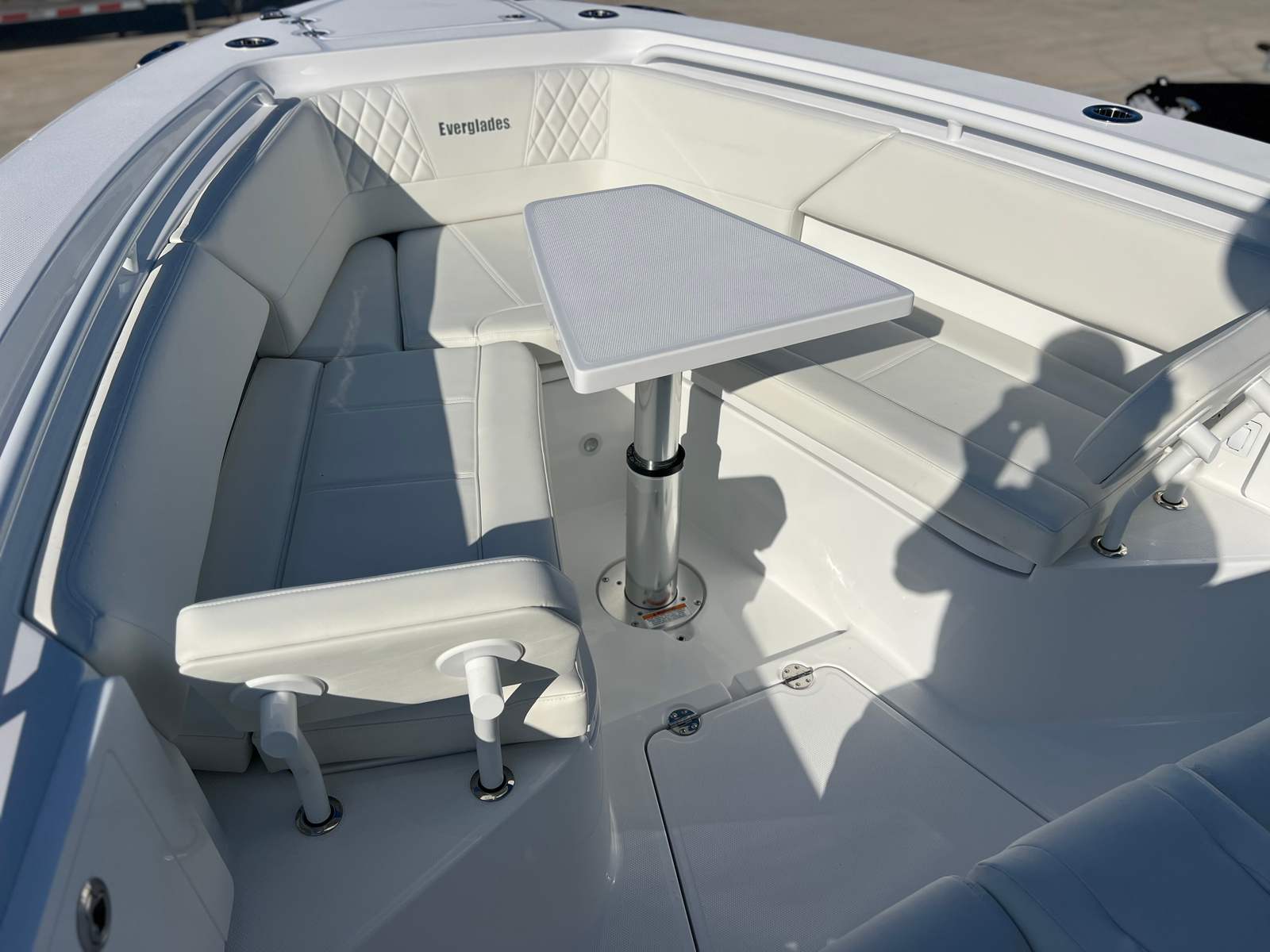 The 2025 Everglades 335 CC is loaded with premium features designed to maximize comfort, convenience, and enjoyment on the water. The Gel-White finish and Solid White upholstery create a clean, modern aesthetic that is both stylish and easy to maintain. The Canvas Package adds versatility and protection, allowing you to adapt to changing weather conditions with ease. For those who appreciate luxury, the chiller plate for the mezzanine seat ensures your refreshments stay cool, even on the hottest days.The engine flushing system simplifies maintenance, helping to extend the life of your twin Yamaha F450 engines. Structural support for the Seakeeper 2 provides the foundation for advanced stabilization, enhancing comfort during rough conditions. Underwater RGBW lights, transom-mounted, add a dramatic touch to evening cruises, creating an inviting ambiance for entertaining or relaxing after sunset. The Prime Package further elevates the boating experience, offering a suite of enhancements that cater to both avid anglers and leisure seekers alike.