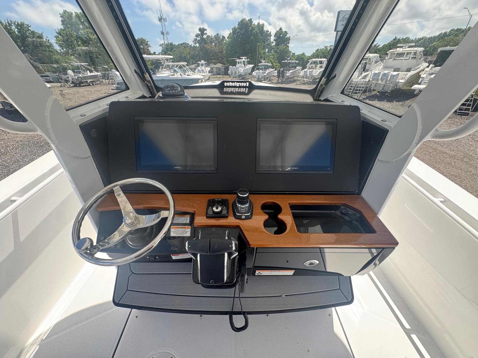 Practicality meets luxury in the Everglades 335 CC. The boat’s generous length provides ample storage for gear, supplies, and personal items, keeping the deck uncluttered and organized. The Auto Pilot and Joystick systems make docking and maneuvering effortless, even in challenging conditions, while the engine flushing system streamlines maintenance and helps preserve engine performance. The canvas covers protect key areas from the elements, reducing wear and tear and keeping your boat looking its best.Fuel efficiency is enhanced by the advanced Mercury engines, allowing you to enjoy longer journeys with fewer stops. The collapsible outriggers are easy to deploy and stow, maximizing space when not in use. The integrated lighting ensures safety and visibility, whether you’re navigating busy marinas or exploring remote coves. Every aspect of the Everglades 335 CC is designed to make ownership enjoyable, convenient, and worry-free.
