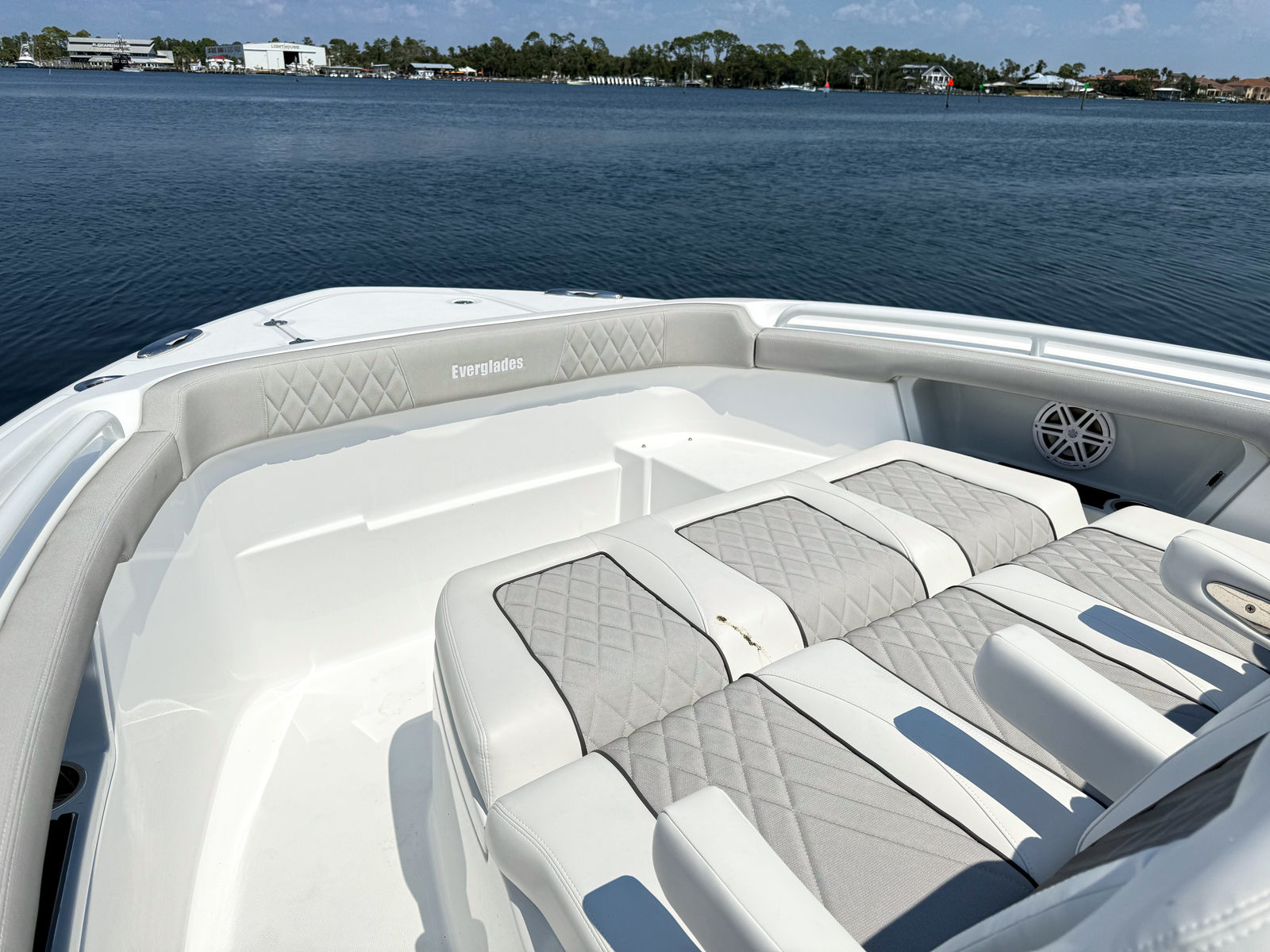 Powering the Everglades 367 CX are two robust engines, delivering a combined 900 horsepower. This impressive setup ensures exhilarating acceleration, smooth cruising, and reliable handling in a variety of conditions. Whether you’re navigating coastal waters or venturing offshore, the 367 CX offers the kind of performance that serious boaters crave. The advanced engine flushing system for Yamaha engines helps maintain peak efficiency and longevity, while the auto pilot and joystick controls for the Yamaha EX provide effortless navigation and precise maneuvering. With these features, you can enjoy both the thrill of speed and the confidence of control, making every journey as enjoyable as it is safe.