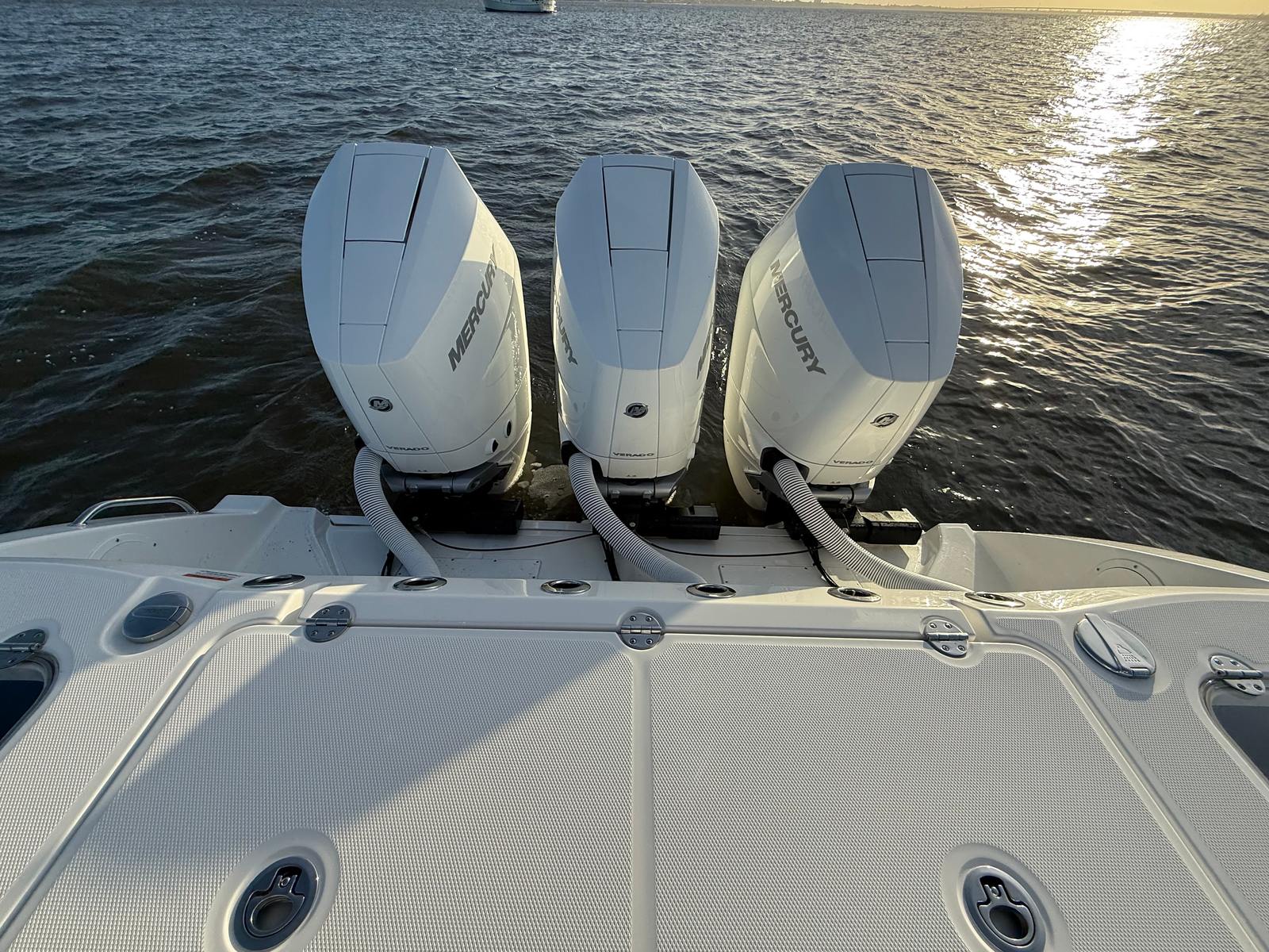 Power and precision are at the heart of the Everglades 375 CC. Equipped with triple Mercury V10 Cold Fusion White engines, each delivering 400 horsepower, this center console boat boasts a combined 1200 horsepower. This powerhouse configuration provides exhilarating speed, smooth acceleration, and exceptional handling, making it ideal for both offshore adventures and leisurely cruises. Whether you are chasing trophy fish or enjoying a day with family and friends, the 375 CC delivers the performance you need to make every outing unforgettable.
