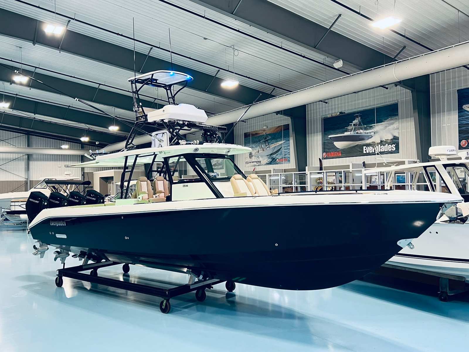 The 2026 Everglades 395 CC is more than just a center console boat for sale; it is a statement of excellence and a gateway to unforgettable experiences on the water. With its powerful quad Mercury 400XL V10 engines, custom Black Panther Metallic accents, luxurious Coconut Tan upholstery, and thoughtful features like the Mediterranean bow shade and full upper station, this Everglades boat for sale is truly in a class of its own. If you are ready to elevate your boating lifestyle and make lasting memories with family and friends, the Everglades 395 CC is the perfect choice. Contact your local dealer today to learn more about this extraordinary vessel and take the first step toward your next great adventure.