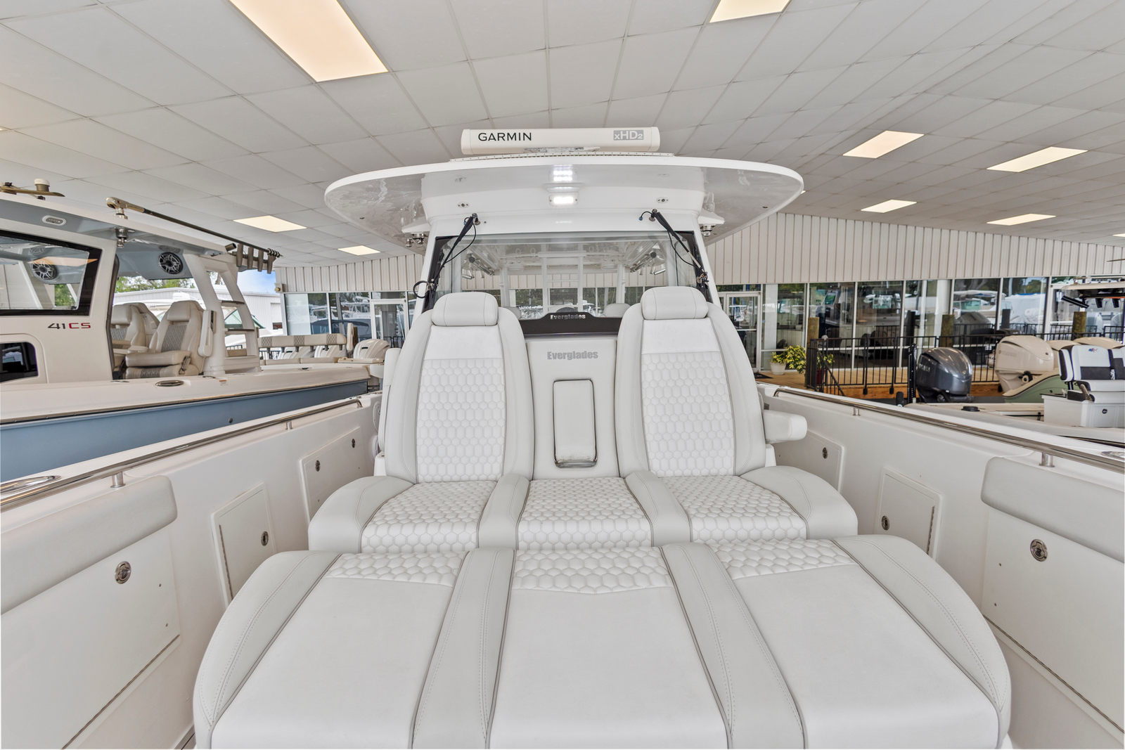 The 2019 Everglades 435 CC is as practical as it is luxurious. Its spacious design offers ample storage for all your gear, from fishing equipment to water toys and picnic supplies. The Center Console layout makes docking and maneuvering a breeze, even in tight spaces. Fuel efficiency is enhanced by the advanced engineering of the quad engines, allowing you to spend more time on the water and less time at the fuel dock. The durable construction and thoughtful design details make maintenance straightforward, so you can focus on enjoying your time on board. Whether you’re planning a quick day trip or an extended adventure, the 435 CC is equipped to handle it all with ease.