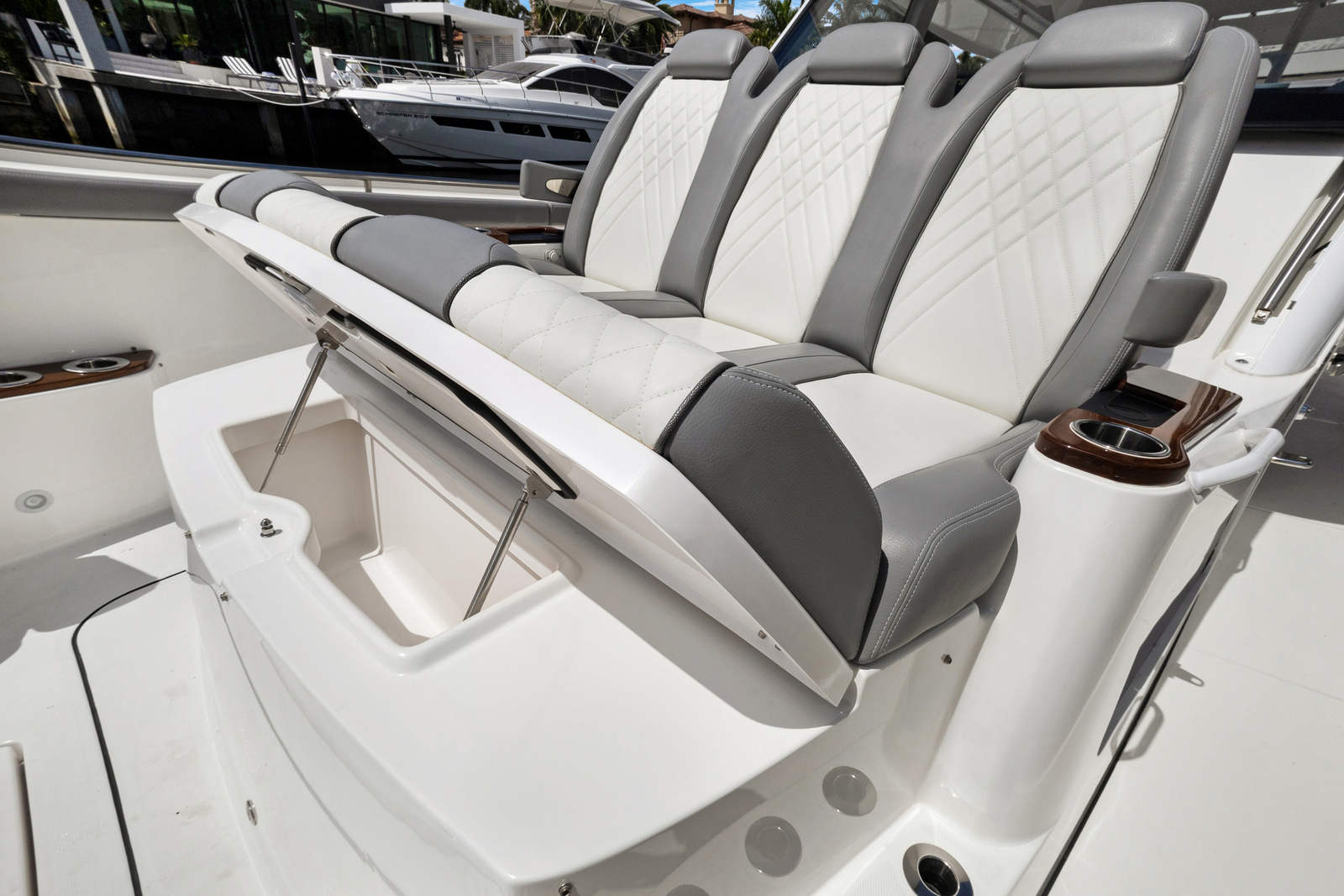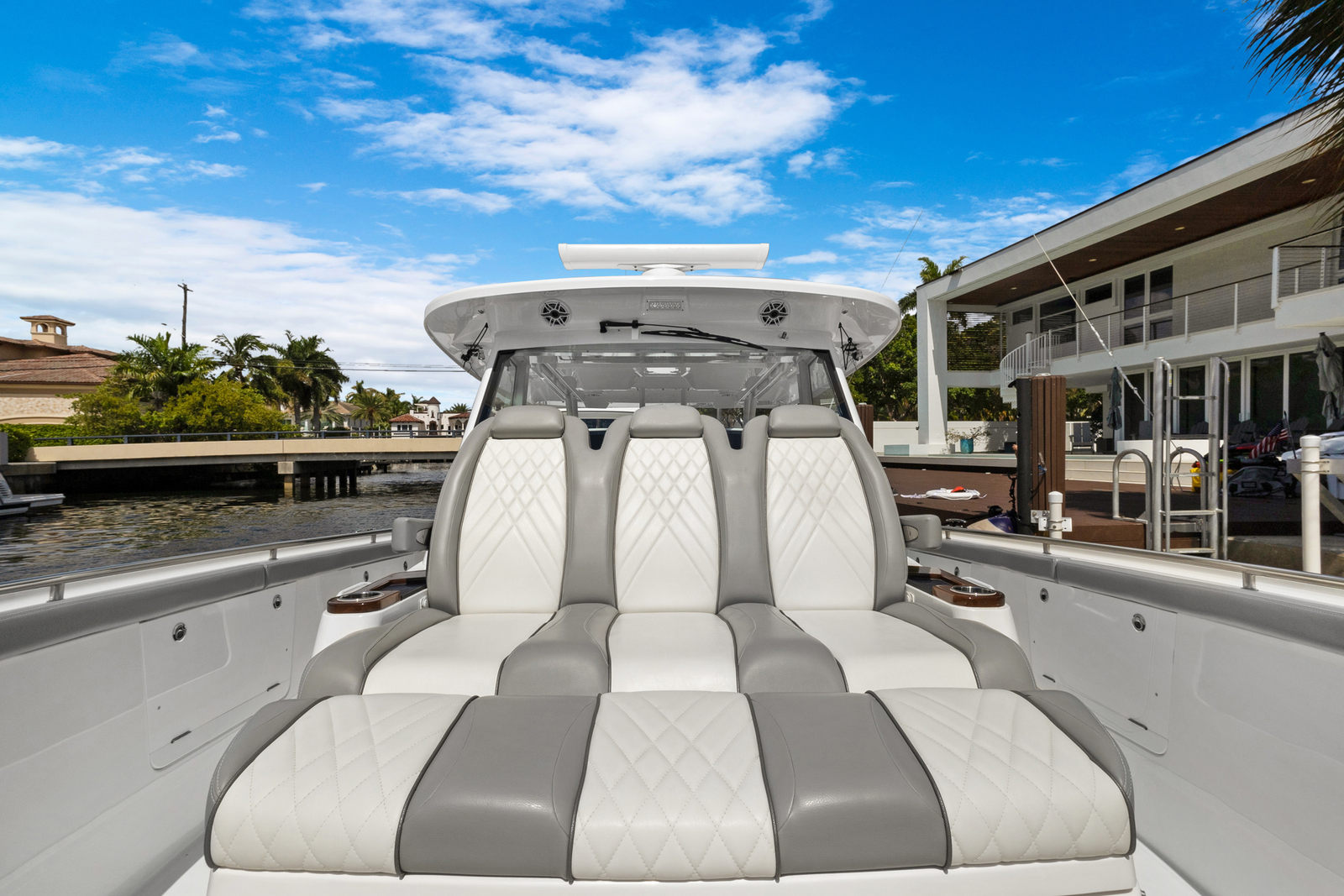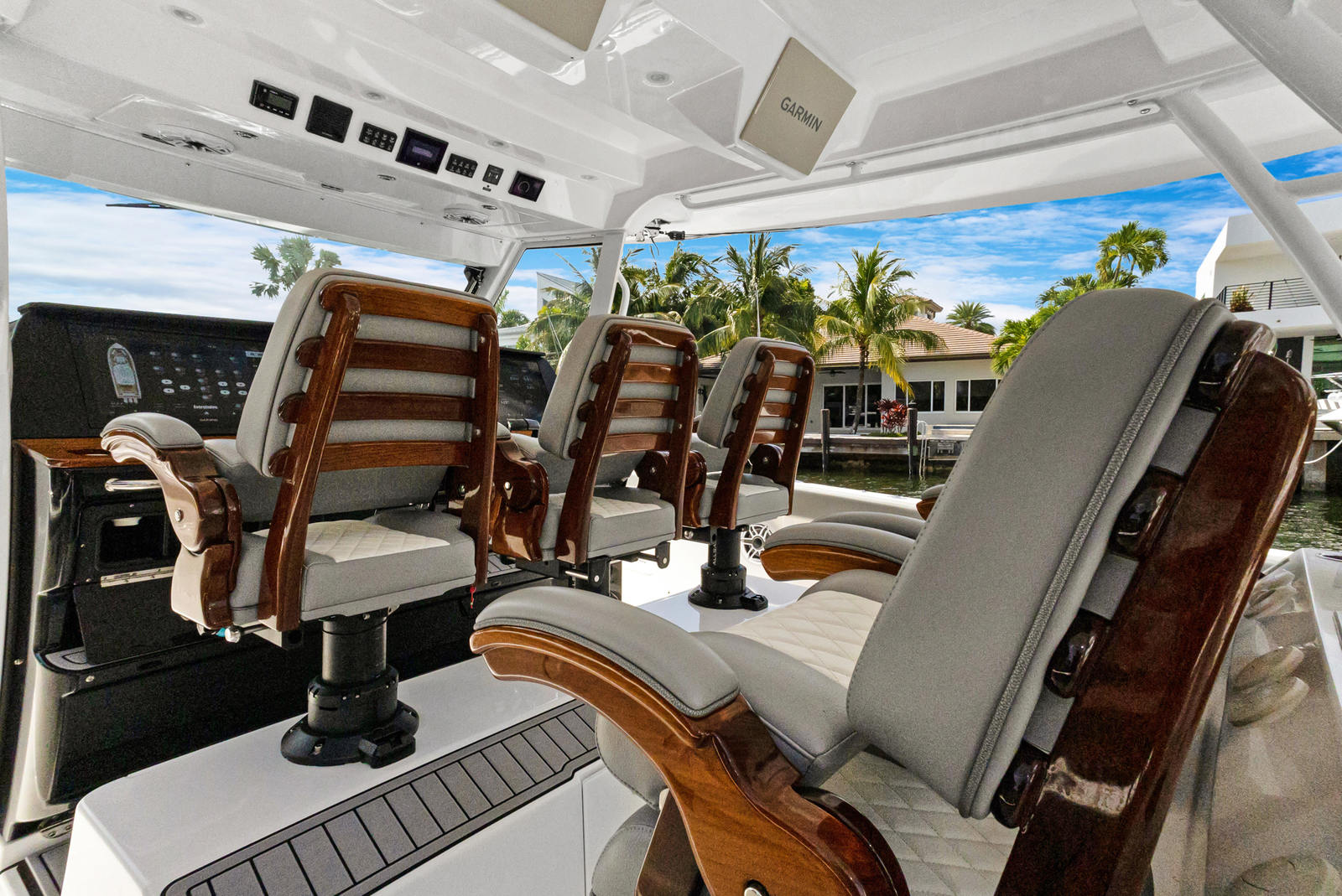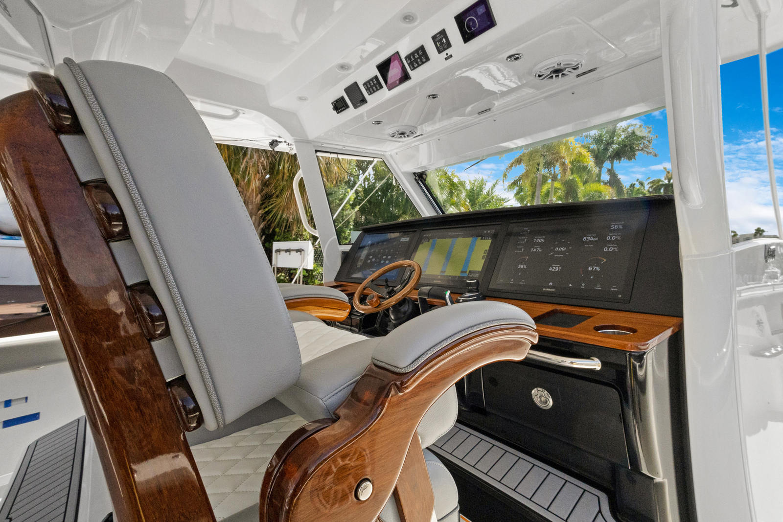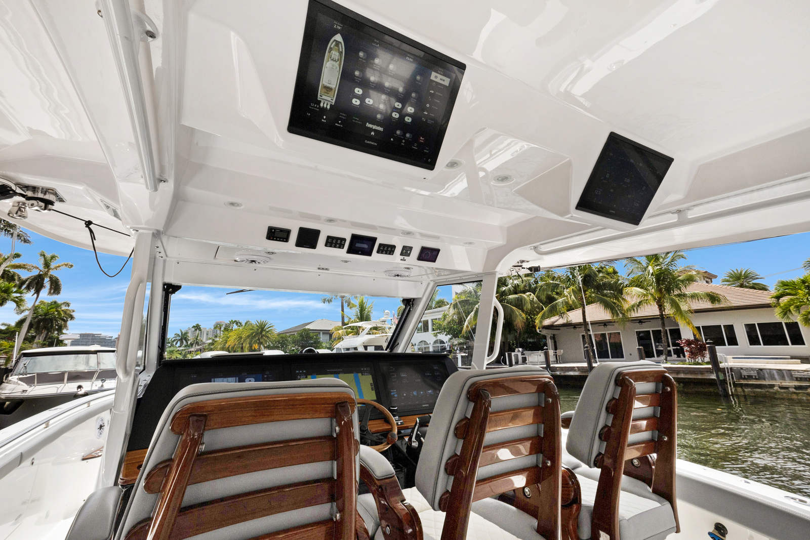 At the heart of the Everglades 455 CC are three powerful engines, delivering a combined 1800 horsepower. This impressive setup ensures exhilarating speed, smooth acceleration, and the ability to handle a variety of sea conditions with confidence. Whether you are cruising to your favorite fishing spot, island hopping, or simply enjoying a day on the water, the 455 CC’s triple-engine configuration provides the reliability and performance that serious boaters demand. The advanced hull design enhances stability and maneuverability, allowing you to navigate with ease and precision.