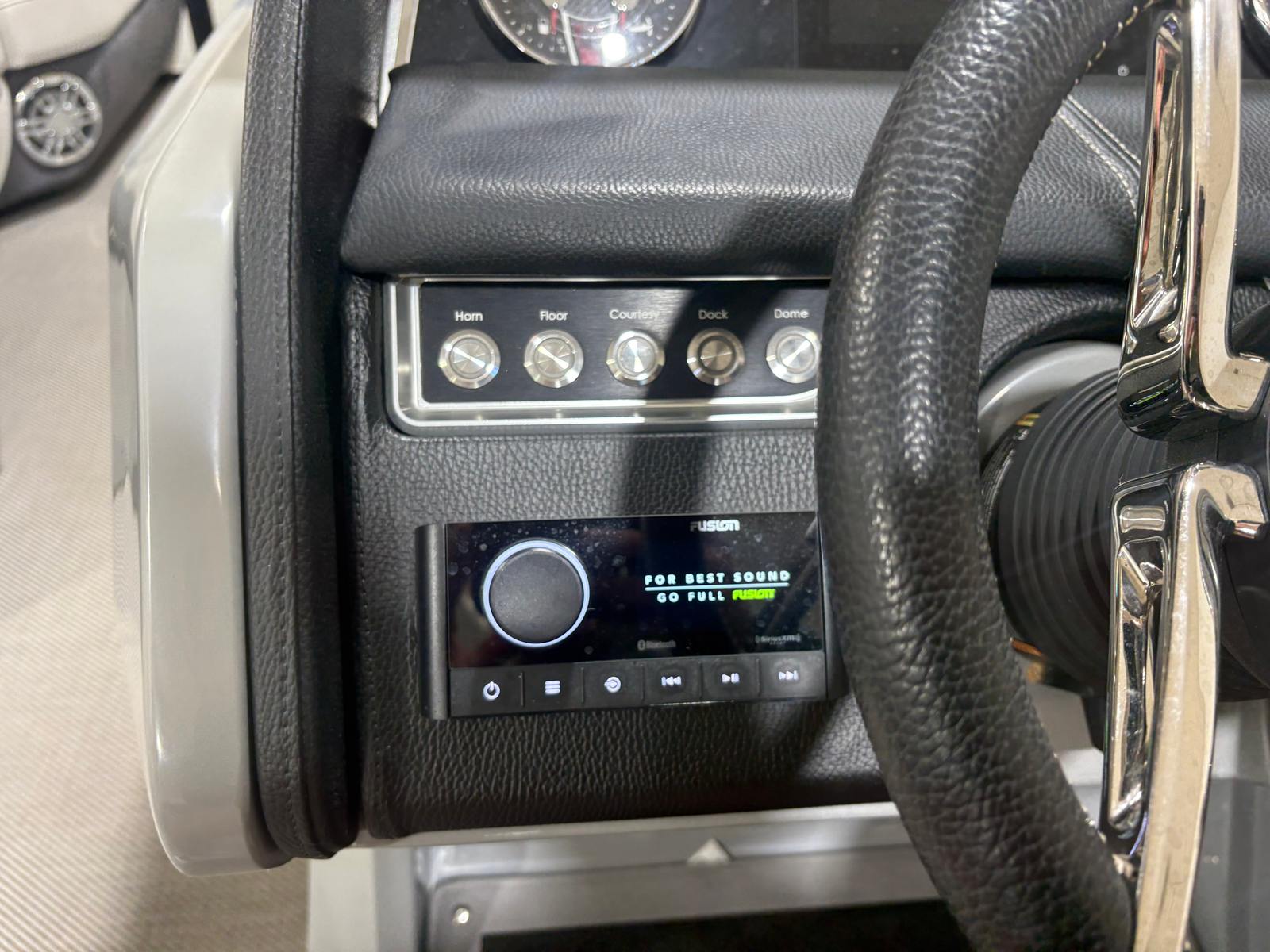 The Godfrey Aqua Patio 235 Sflc comes equipped with a host of special features that set it apart from other pontoon boats for sale. Enjoy the convenience of a FULL MOORING COVER, which helps protect your investment and keeps your boat looking pristine. The POWER BIMINI TOP offers effortless shade and shelter, allowing you to relax in comfort no matter the weather. The TRANSOM RAIL SYSTEM adds safety and versatility, while DOCKING LIGHTS make evening arrivals and departures a breeze.For those who love water activities, the FOLDING SWIM LADDER and SKI TOW BAR make it easy to dive in or enjoy exhilarating water sports. The UNDERWATER LIGHTS and RGB UNDERDECK LIGHTS create a captivating ambiance for nighttime cruises, while the RGB INTERIOR LIGHTING lets you set the mood for any occasion. The stainless steel prop not only boosts performance but also adds a touch of sophistication to the boat’s overall design.