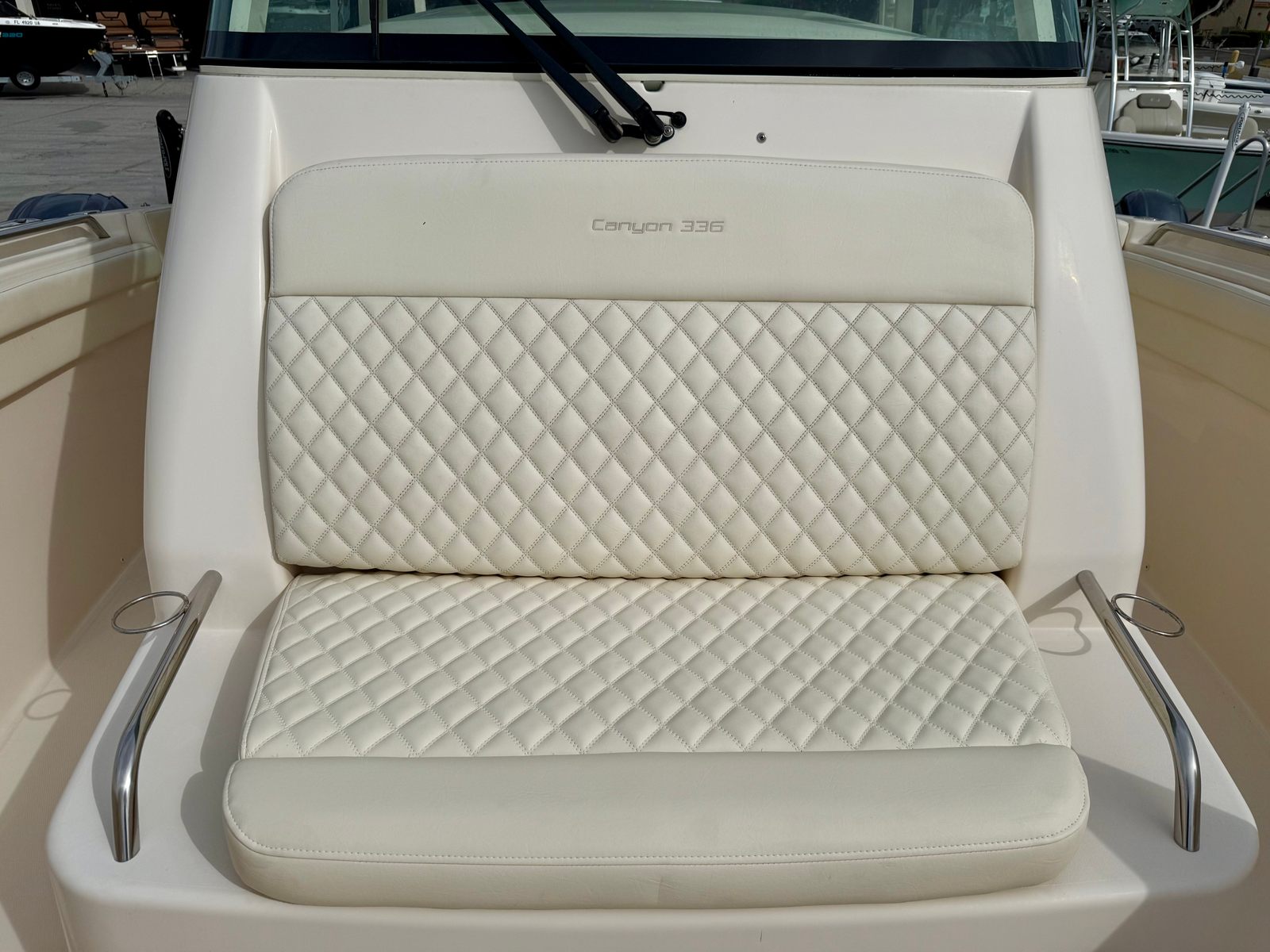 Consigned from a local customer, this impressive 2023 Grady-White Boats 336 Canyon has just been professionally cleaned and serviced, making it fully prepared for its next owner. Powered by triple Yamaha 300HP outboards with only 84 hours of use, this vessel combines power, reliability, and performance. A fresh 100-hour service has just been completed, ensuring that all systems are ready for the water. This 336 Canyon is equipped with twin Garmin 16-inch navigation displays featuring sonar for precise charting and fish finding, a Fusion stereo system for premium sound, Yamaha autopilot, Garmin VHF radio, trim tabs, a fully equipped marine head, and abundant seating from bow to stern for comfort and versatility. The layout is designed for both serious offshore fishing and leisurely family cruising. A fresh coat of bottom paint has also just been applied, adding to the vessel’s turnkey readiness. Call us today to schedule your private viewing. All preowned boat pricing includes financing through Naples Boat Mart with approved credit.