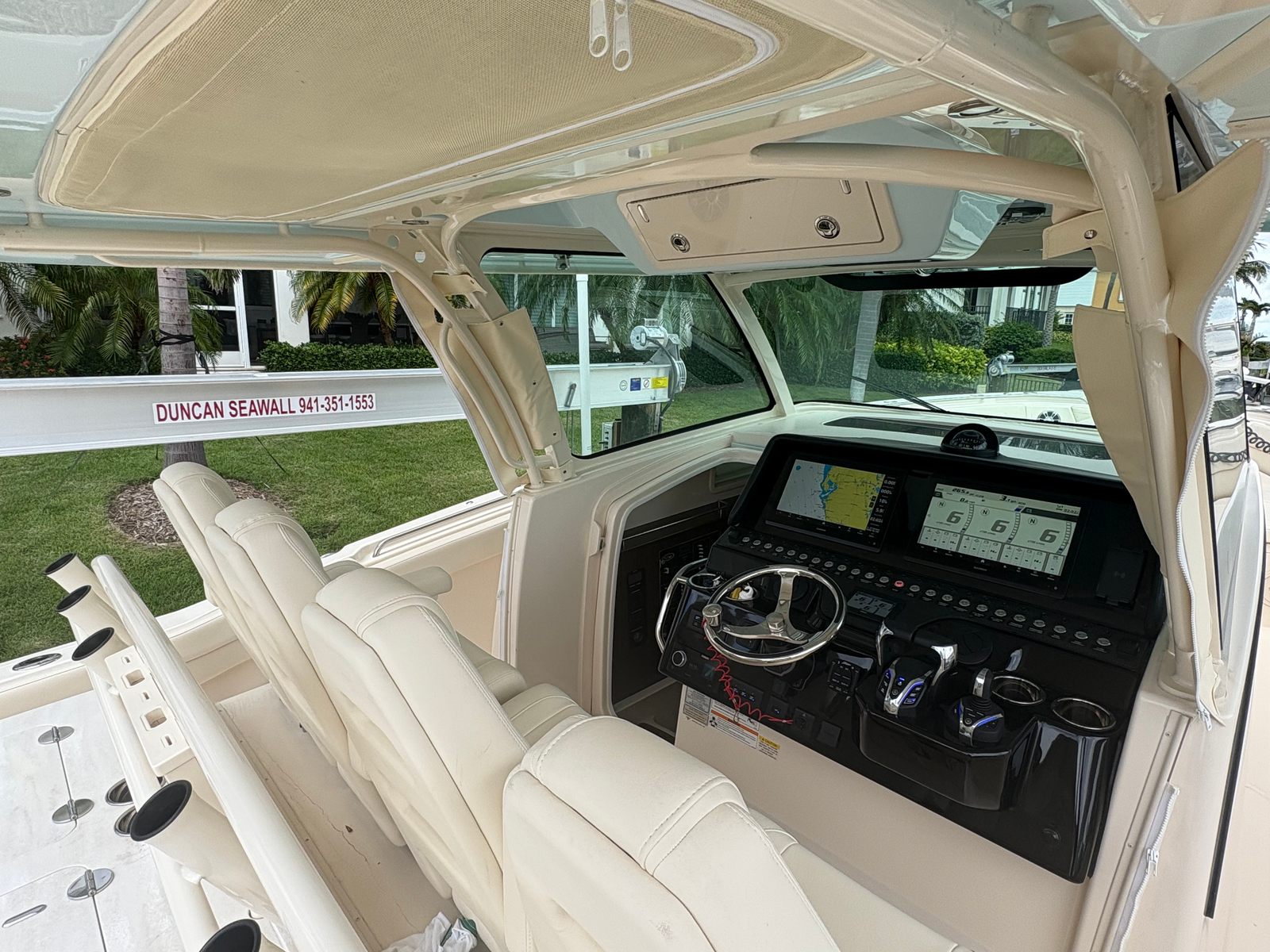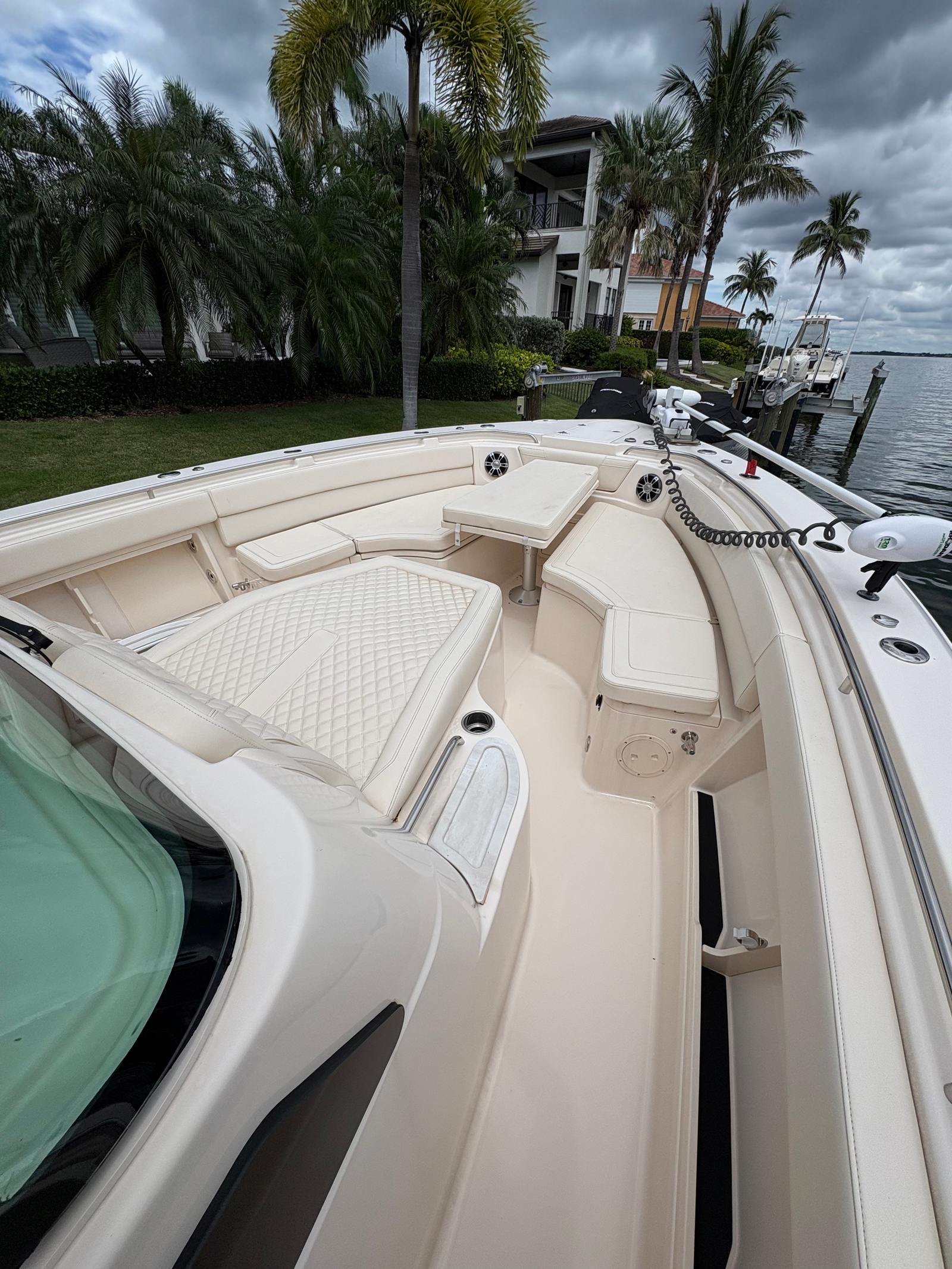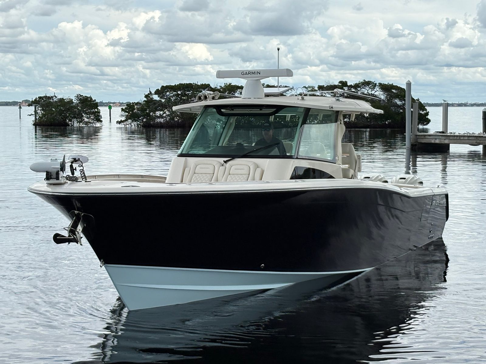 The Grady-White Canyon 386 is packed with features that elevate your boating experience. Its spacious 37-foot layout offers ample room for relaxation, entertaining, and fishing. The Center Console design maximizes deck space, providing unobstructed movement from bow to stern. The helm is ergonomically designed for comfort and control, with intuitive instrumentation and easy access to all controls. Premium materials and finishes are evident throughout, reflecting Grady-White’s commitment to quality and durability. The Canyon 386 is built to handle a variety of conditions, ensuring a safe and enjoyable ride for everyone on board.
