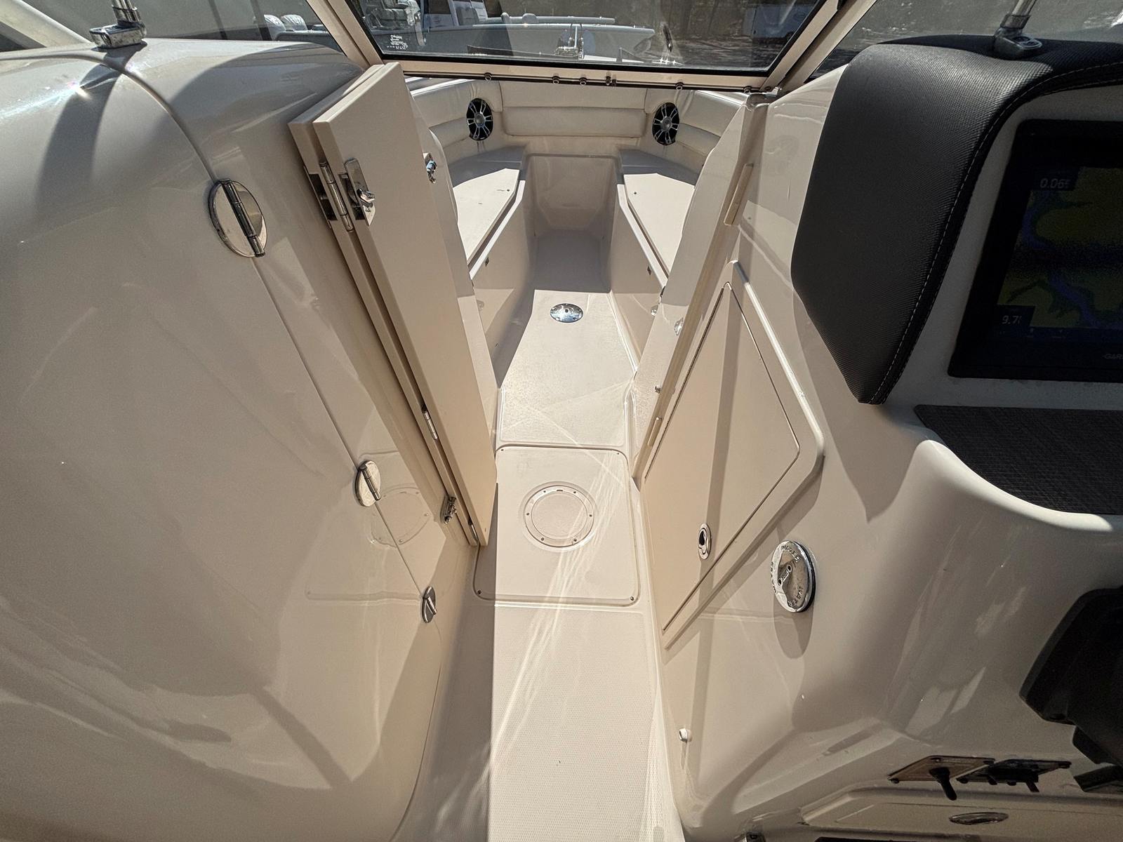 The 2022 Grady-White Freedom 255 is packed with features that elevate your time on the water. The dual console design ensures that both captain and passengers enjoy maximum comfort and convenience. Spacious seating arrangements allow for easy conversation and relaxation, while the thoughtfully designed helm provides excellent visibility and intuitive controls. The boat’s generous beam creates a stable platform, ideal for fishing, entertaining, or simply lounging in the sun. Storage compartments are strategically placed throughout the vessel, making it easy to stow gear, water toys, and personal items securely and out of the way.The Freedom 255’s layout is designed to maximize both utility and enjoyment. The open bow area offers additional seating and a great vantage point for sightseeing or socializing. The cockpit is roomy and versatile, accommodating everything from fishing gear to picnic baskets. With its robust construction and attention to detail, this Grady-White boat for sale is built to withstand the rigors of both saltwater and freshwater environments, ensuring years of dependable service.
