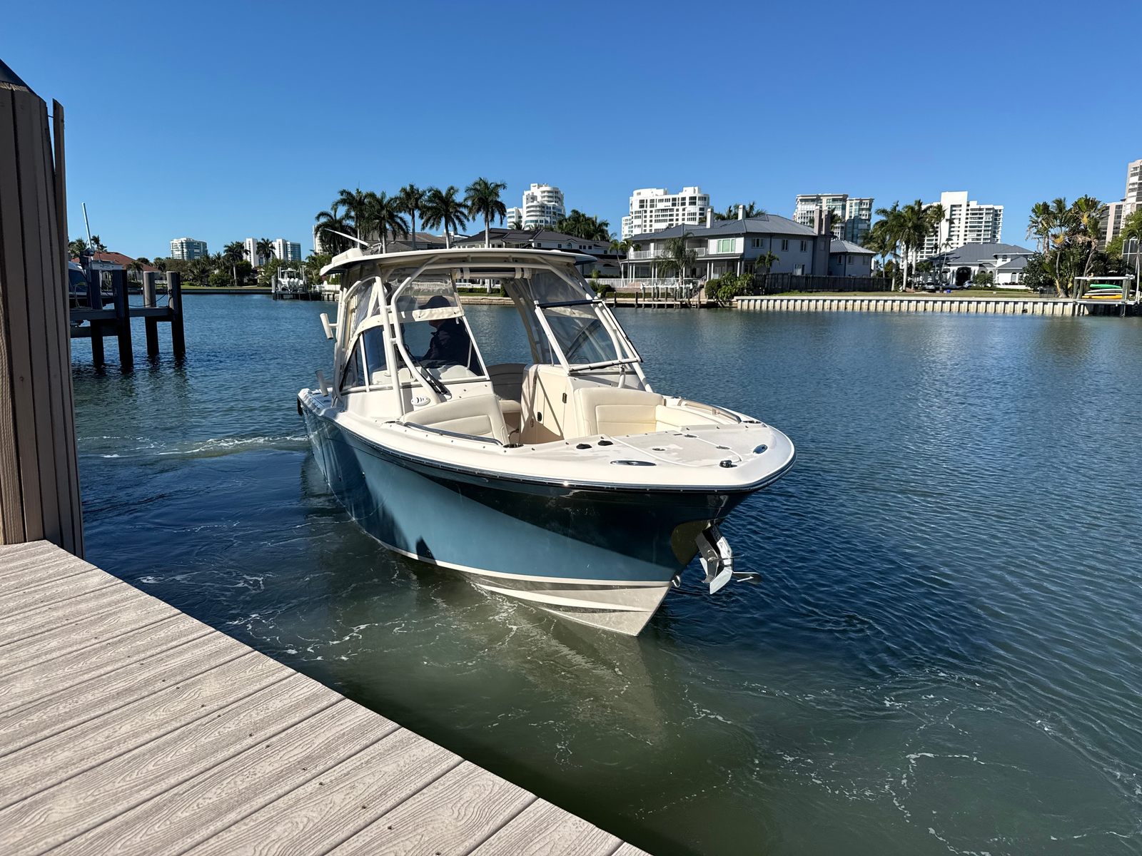 The 2022 Grady-White Freedom 275 is a 26.9-foot dual console boat designed to deliver the ultimate boating experience. With a length just shy of 27 feet, this model provides ample space for family, friends, and gear, making it an ideal choice for those who demand both comfort and functionality. The Freedom 275 is a used boat in excellent condition, with only 93 engine hours, ensuring you get a lightly used vessel that is ready for many more adventures. Grady-White’s reputation for building durable, seaworthy boats is evident in every detail of this model, from its robust hull to its thoughtfully designed layout.