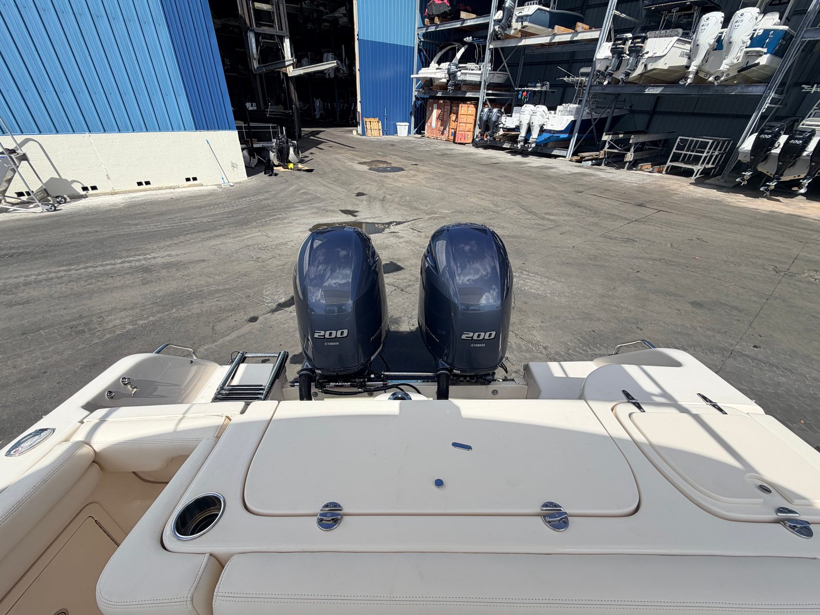 Powered with the twin F200 Yamaha four strokes with under 50 hours on both motors.