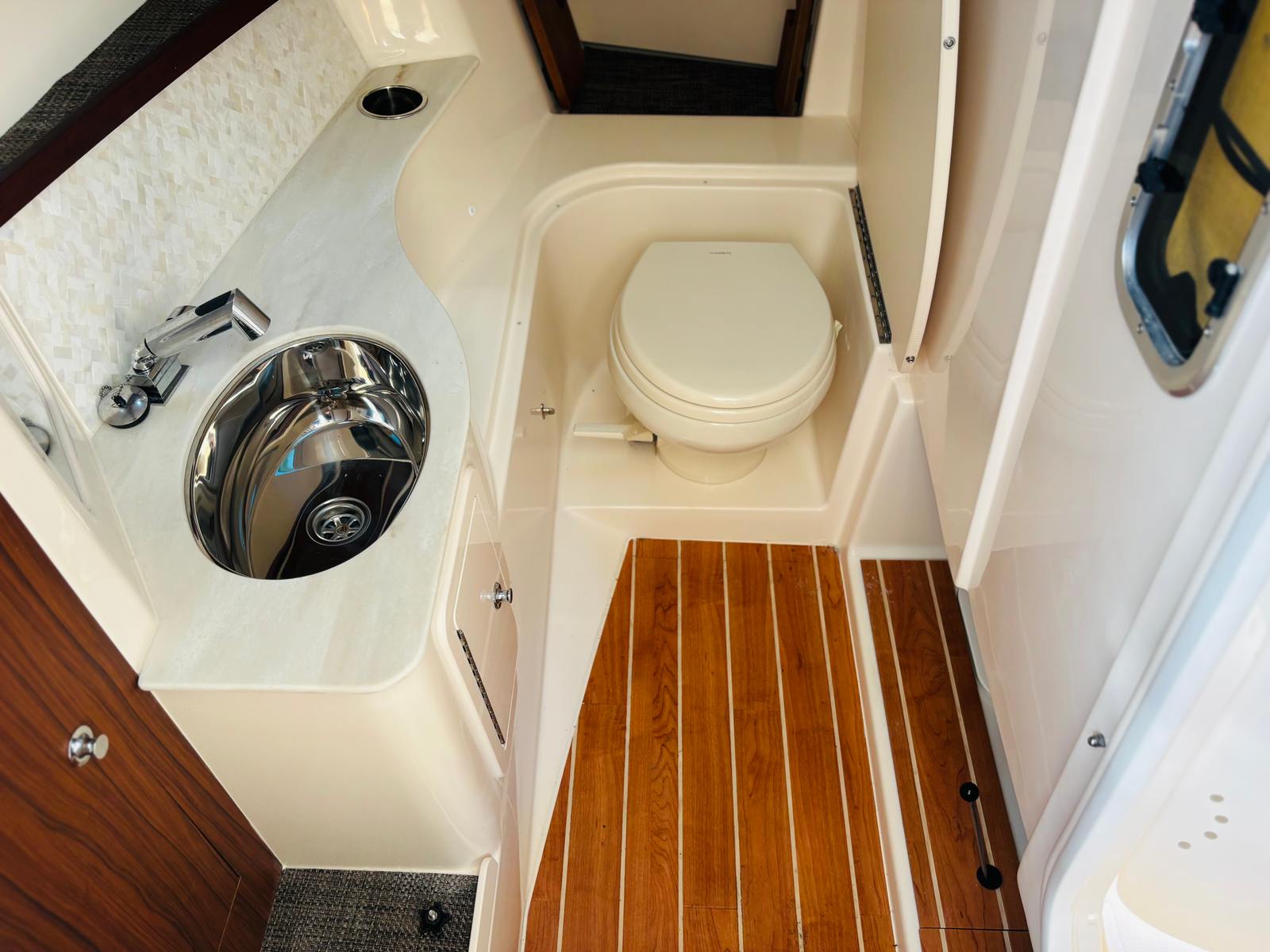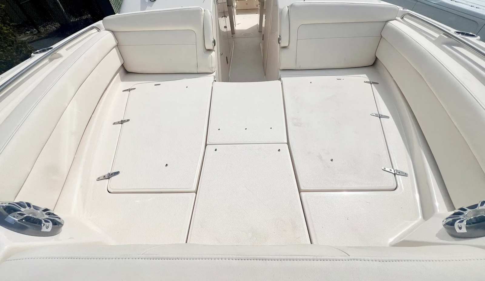 Powering the Grady-White Freedom 325 are two robust engines, delivering a combined 600 horsepower. This impressive setup ensures exhilarating acceleration, smooth cruising, and reliable handling in a variety of conditions. Whether you’re navigating coastal waters or venturing offshore, the twin engines provide the confidence and power needed for both leisurely outings and more spirited adventures. The Freedom 325’s hull design is engineered for stability and efficiency, offering a comfortable ride even when the waters get choppy. With this level of performance, you can reach your favorite destinations quickly and enjoy every moment on the water.