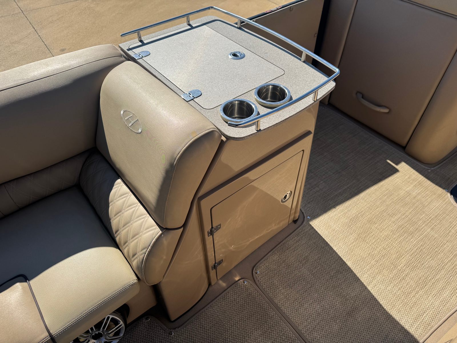 Powered by a single engine delivering a remarkable 350 horsepower, this Harris Grand Mariner 250 SL is engineered for exhilarating performance and smooth handling. With only 386 engine hours, this pontoon boat for sale has plenty of life left for countless adventures on the water. The robust engine ensures quick acceleration, responsive maneuvering, and the ability to cruise effortlessly at a variety of speeds. Whether you’re towing water toys, exploring new coves, or simply enjoying a leisurely ride, the Grand Mariner 250 SL’s power and agility make every outing a pleasure.