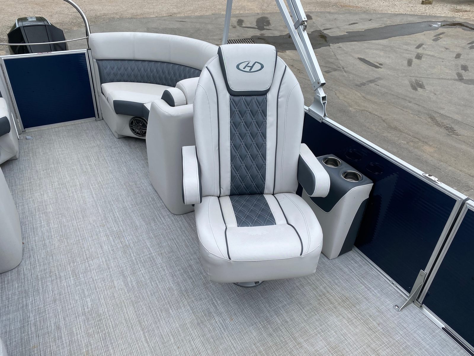 Powering this Harris Sunliner 230 is a robust single engine with an impressive 200 horsepower. This setup provides the perfect balance between power and efficiency, allowing you to glide effortlessly across the water while maintaining excellent fuel economy. The 200 HP engine ensures responsive handling and smooth acceleration, making it easy to navigate busy waterways or open lakes. Whether you are towing a tube, heading out for a day of fishing, or simply enjoying a leisurely cruise, the performance of this pontoon boat is sure to impress.