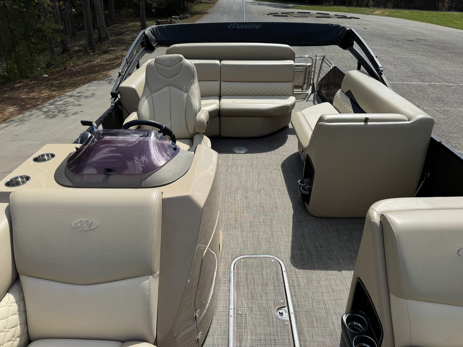 Under the hood, the Manitou SES SHP 25 is powered by a single engine delivering a robust 300 horsepower. With only 256 engine hours, this pontoon boat offers plenty of life and excitement for its next owner. The powerful engine ensures smooth acceleration, impressive top speeds, and the ability to handle a variety of water conditions with ease. Whether you’re towing water toys, cruising at a leisurely pace, or seeking a little adrenaline, the performance of this pontoon boat for sale is sure to impress.