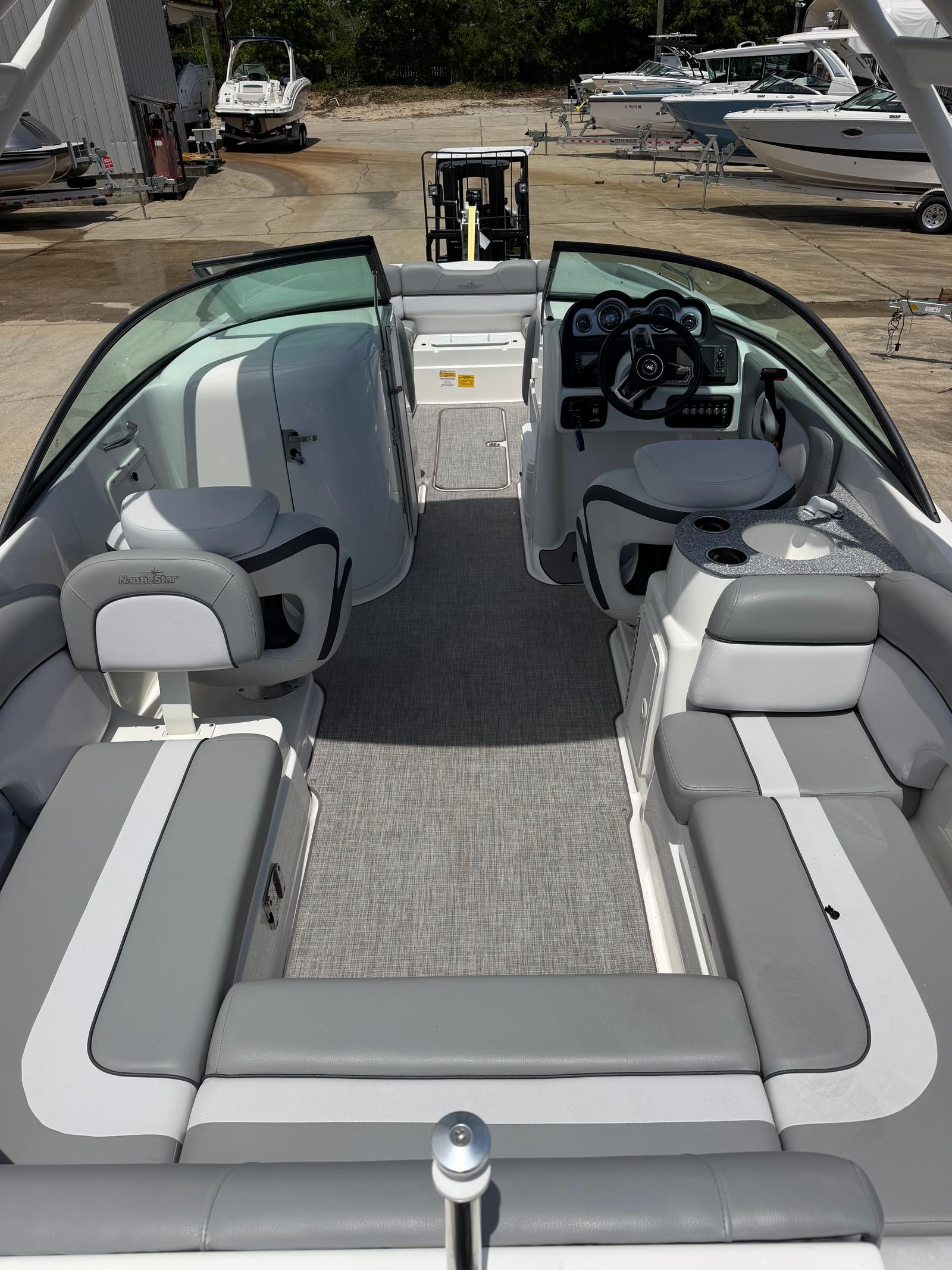 Awesome stepped hull design gives this boat an incredible ride, smooth, fast, and efficient. Great, roomy deck boat for the family to enjoy, whether you're cruising, hanging at the sandbar, or doing some light fishing.
