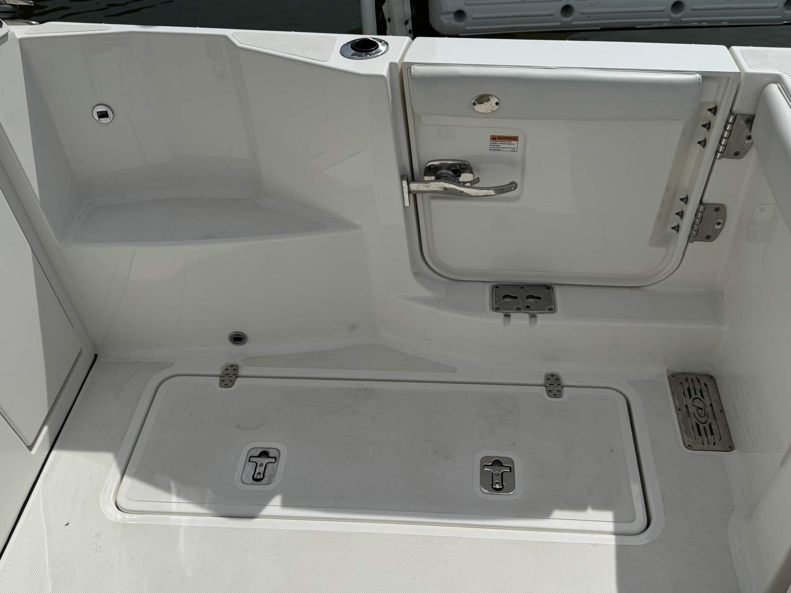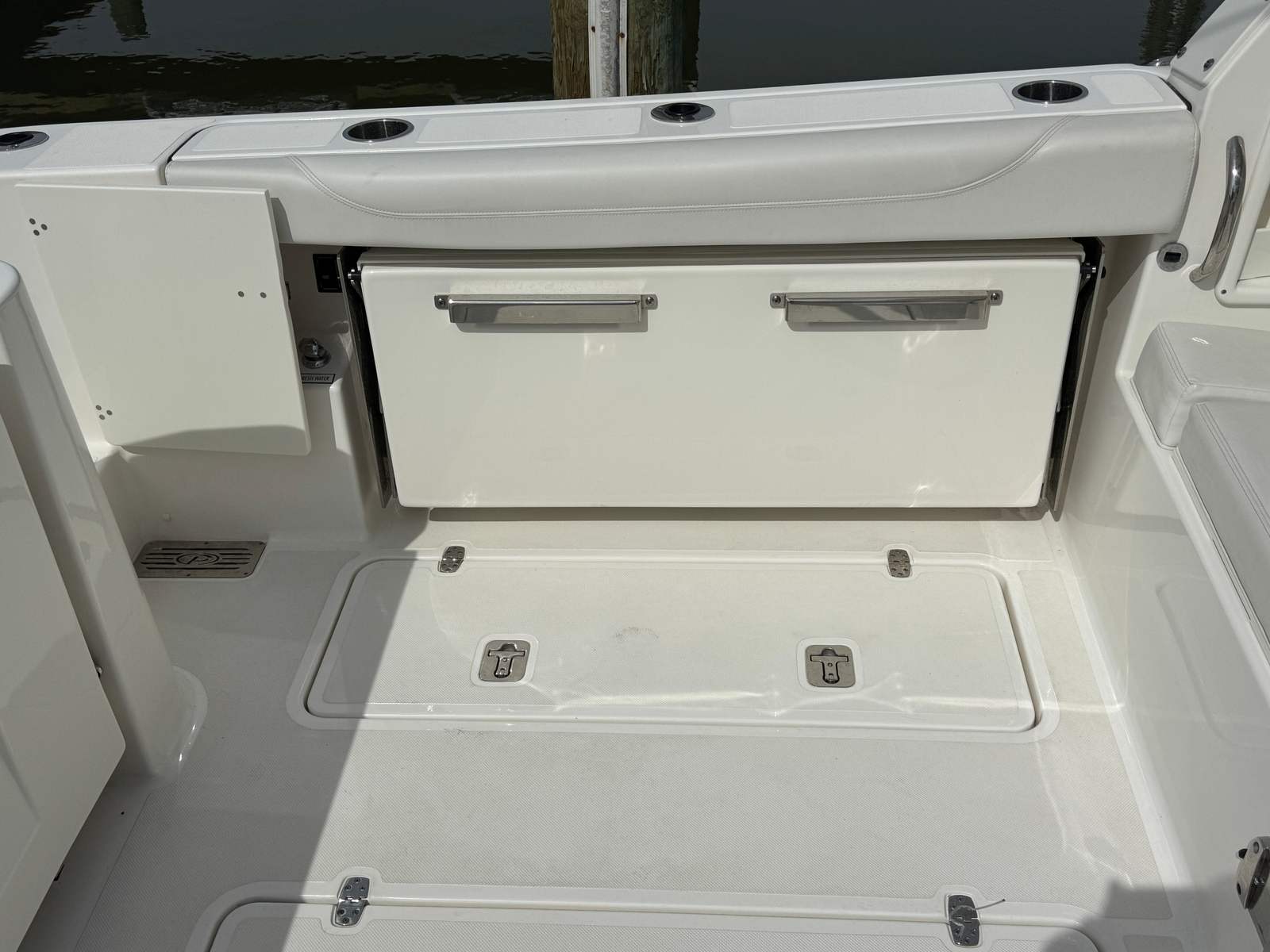 Powered by twin engines delivering a combined 600 horsepower, the Pursuit DC 326 offers exhilarating performance and smooth handling. The dual engines provide impressive acceleration, responsive control, and the confidence to tackle a variety of water conditions. With only 128 engine hours, these engines are primed for many more seasons of enjoyment. Whether you are cruising along the coastline, heading to your favorite fishing spot, or enjoying water sports, this dual console boat for sale delivers the power and reliability you need for every journey.