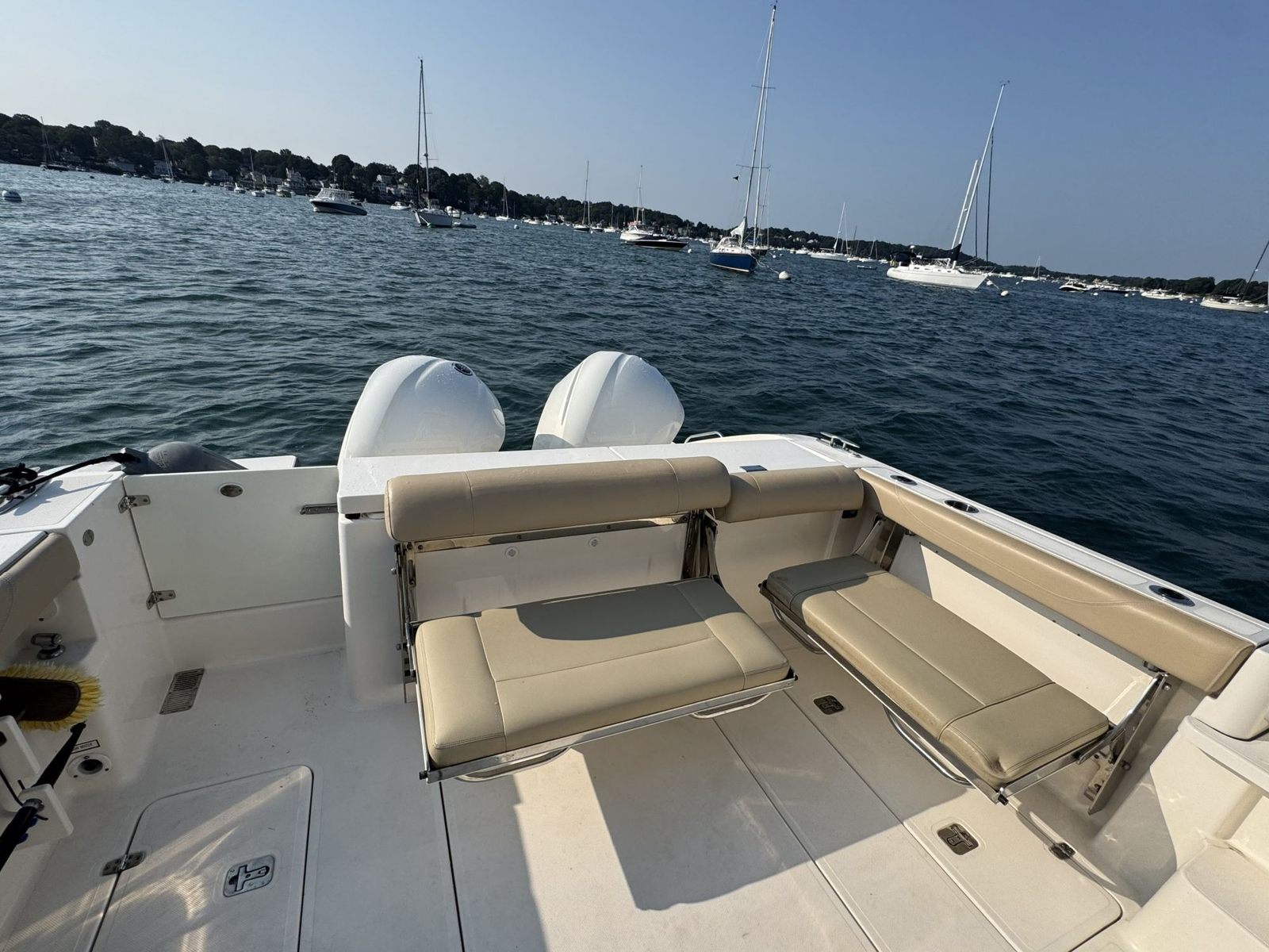 Powering the Pursuit OS 325 are twin engines, delivering a combined 600 horsepower. With only 550 engine hours, these engines have plenty of life left, ensuring reliable performance for years to come. The dual-engine setup provides excellent maneuverability and power, allowing you to cruise confidently in a variety of conditions. Whether you are navigating coastal waters or heading offshore, the OS 325 offers smooth acceleration, impressive top speeds, and responsive handling. This level of performance makes it easy to reach your favorite destinations quickly and efficiently, maximizing your time on the water.