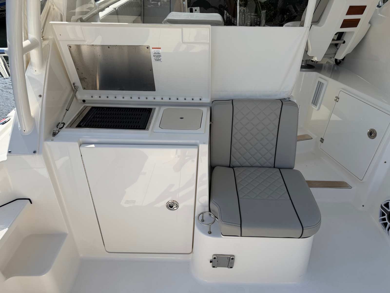 Beyond its recreational appeal, the Pursuit OS 325 offers practical benefits that make ownership a pleasure. The cruiser’s design includes ample storage for gear, supplies, and personal items, ensuring everything you need is within easy reach. Docking and maneuvering are simplified by the boat’s responsive handling and thoughtfully designed controls, making it accessible even for those new to boating.The efficient 300-horsepower engine strikes a balance between power and fuel economy, allowing you to enjoy extended trips without frequent refueling stops. Maintenance is straightforward, thanks to Pursuit’s reputation for reliability and quality construction. Whether you’re planning a quick day trip or a longer voyage, the OS 325 is equipped to handle your needs with ease.