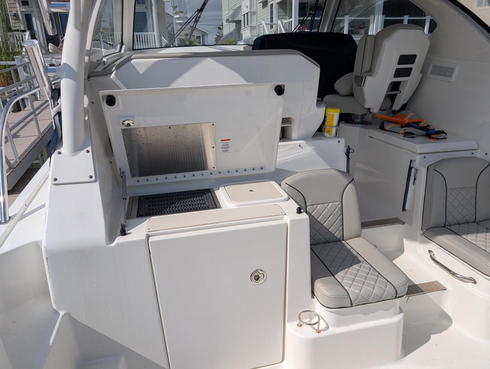 Practicality is at the heart of the Pursuit OS 355’s design. The boat’s ample storage solutions make it easy to keep your gear organized and accessible, whether you’re packing for a day trip or a weekend adventure. The intuitive layout of the cockpit and helm station simplifies docking and maneuvering, making it easier for both seasoned captains and newcomers to handle the boat with confidence.Fuel efficiency is another key advantage, thanks to the advanced engineering of the twin engines. This means you can enjoy longer journeys without worrying about frequent refueling stops. The Pursuit OS 355 is also designed for easy maintenance, allowing you to spend more time enjoying the water and less time on upkeep.