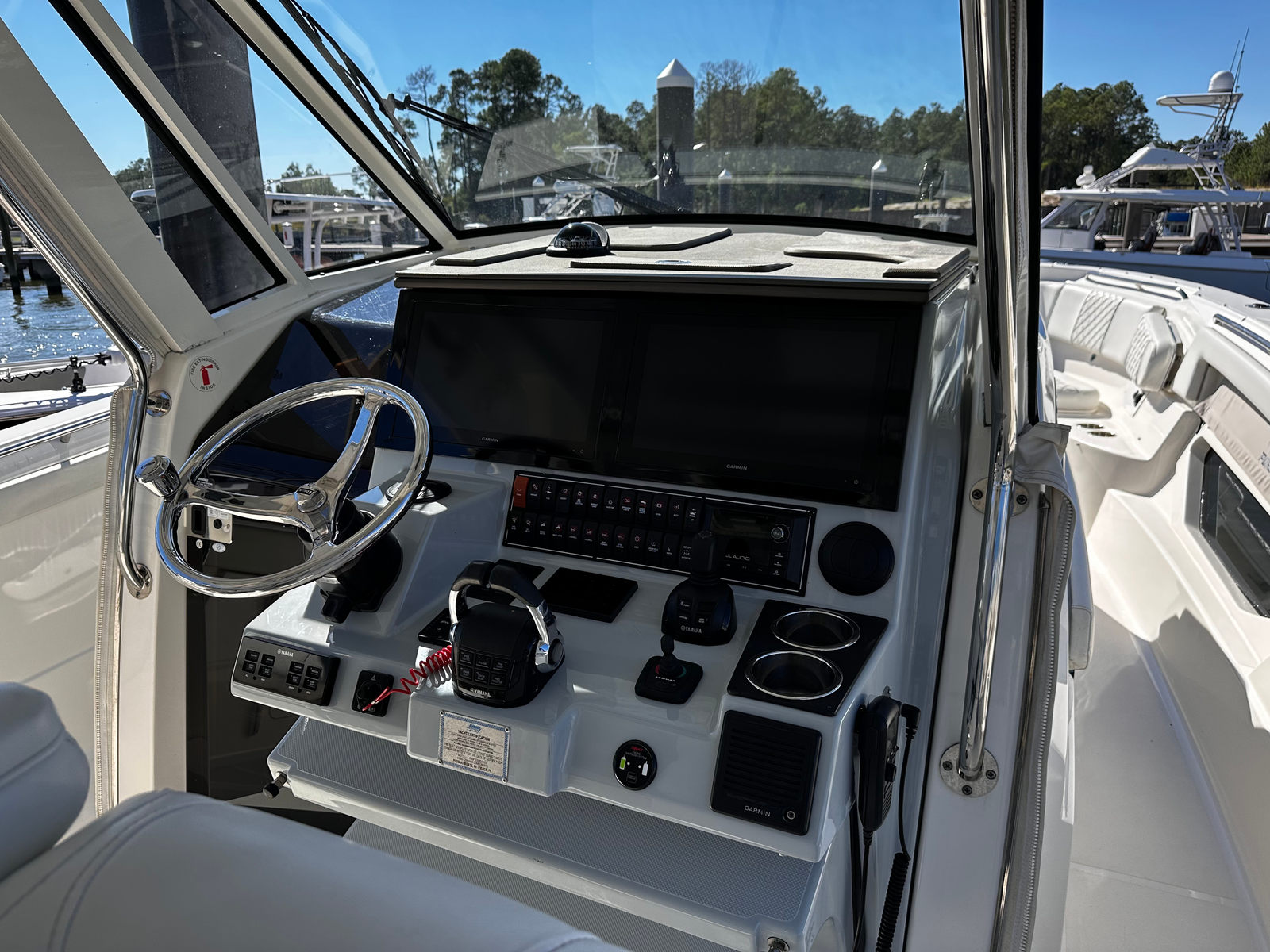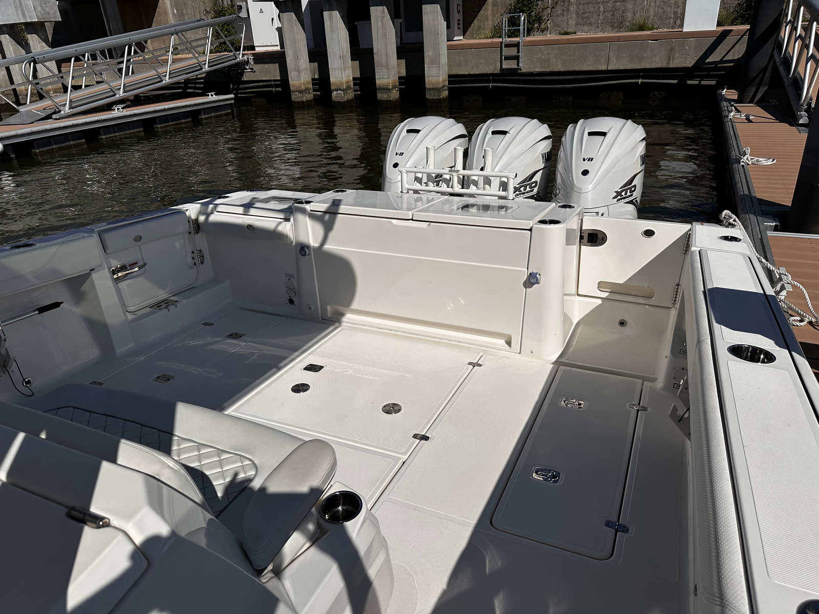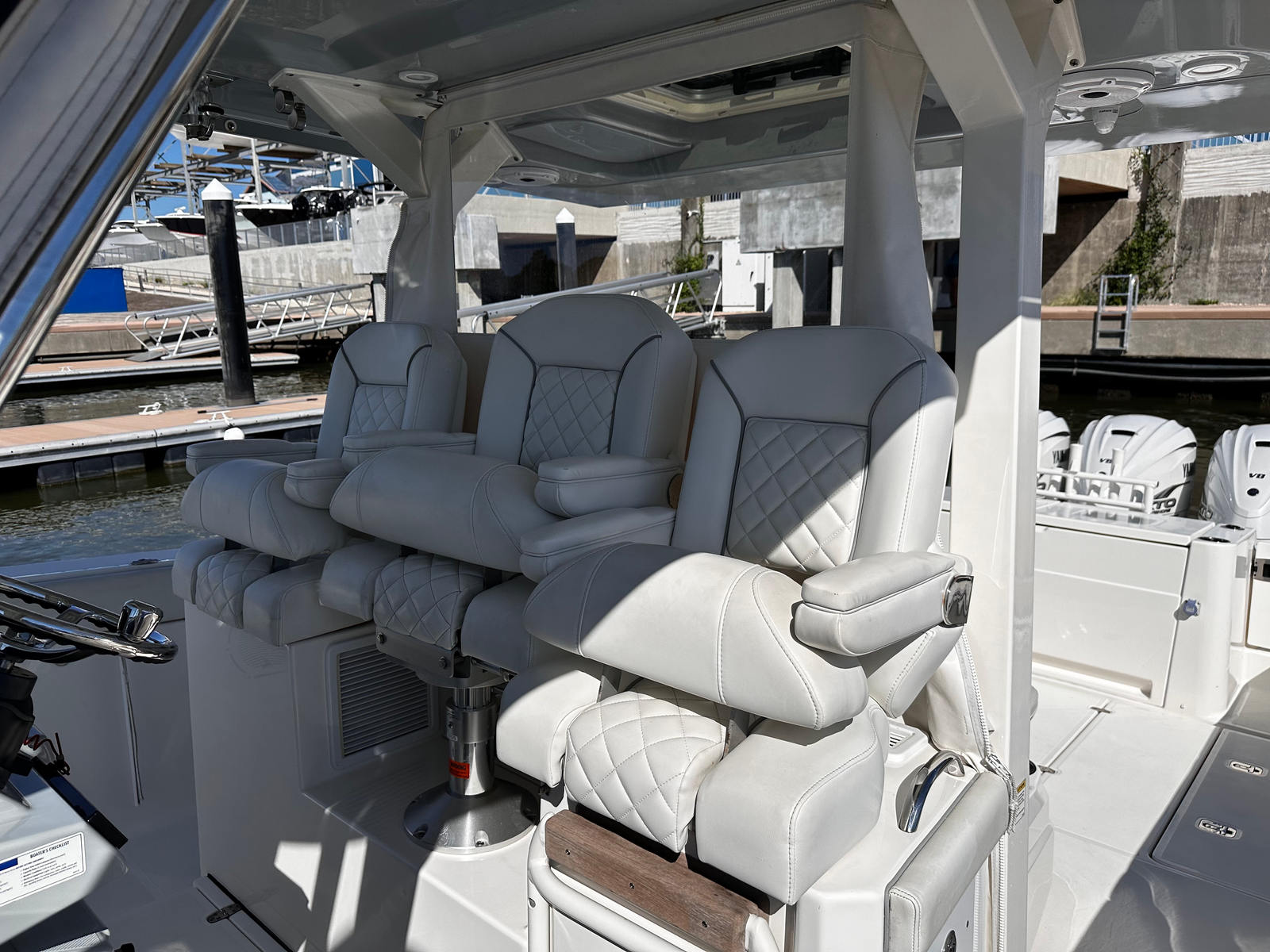 Practicality is at the heart of the Pursuit S 378’s design. The ample storage options ensure that you have plenty of space for fishing gear, water toys, and personal belongings, keeping the deck clutter-free and organized. The Center Console layout makes docking and maneuvering straightforward, whether you are pulling into a busy marina or anchoring in a secluded cove. The triple engine setup not only provides outstanding performance but also contributes to fuel efficiency when cruising at optimal speeds.Maintenance is simplified thanks to Pursuit’s commitment to quality engineering and accessible systems. The used condition of this 2021 model means you can enjoy all these benefits at a more attractive price point, making it a smart investment for those seeking a high-end Center Console boat for sale.