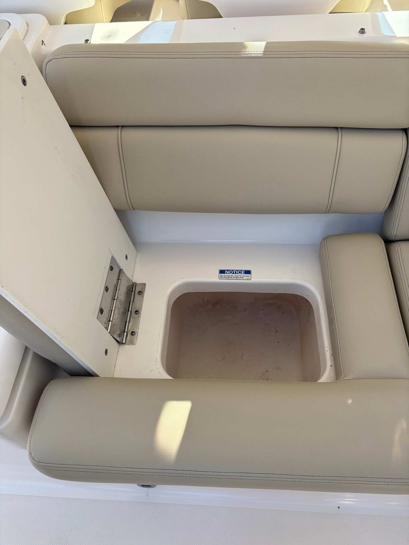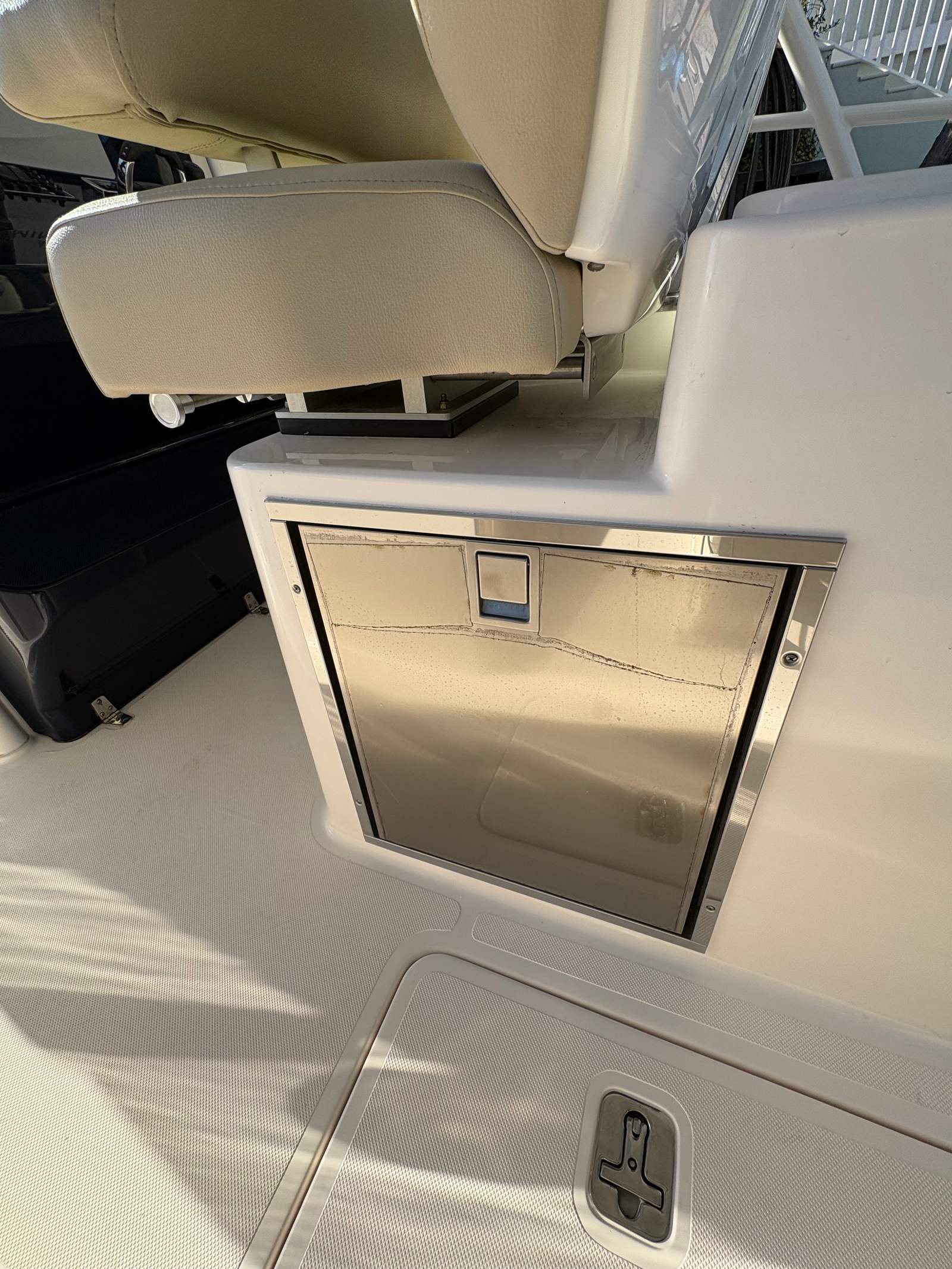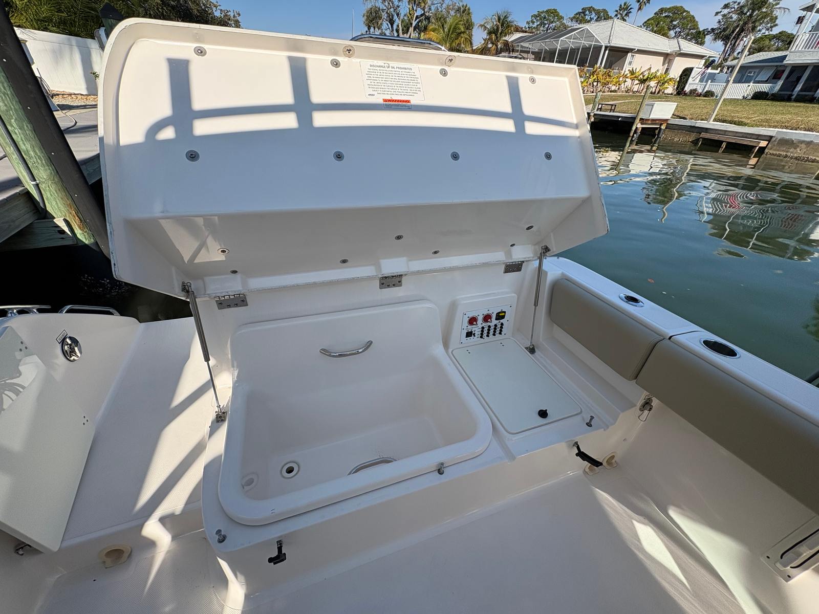 Inside the console, you’ll find a freshwater head and sink, giving you the convenience needed for longer days on the water. The Polk audio system provides excellent sound whether you’re underway or at anchor.