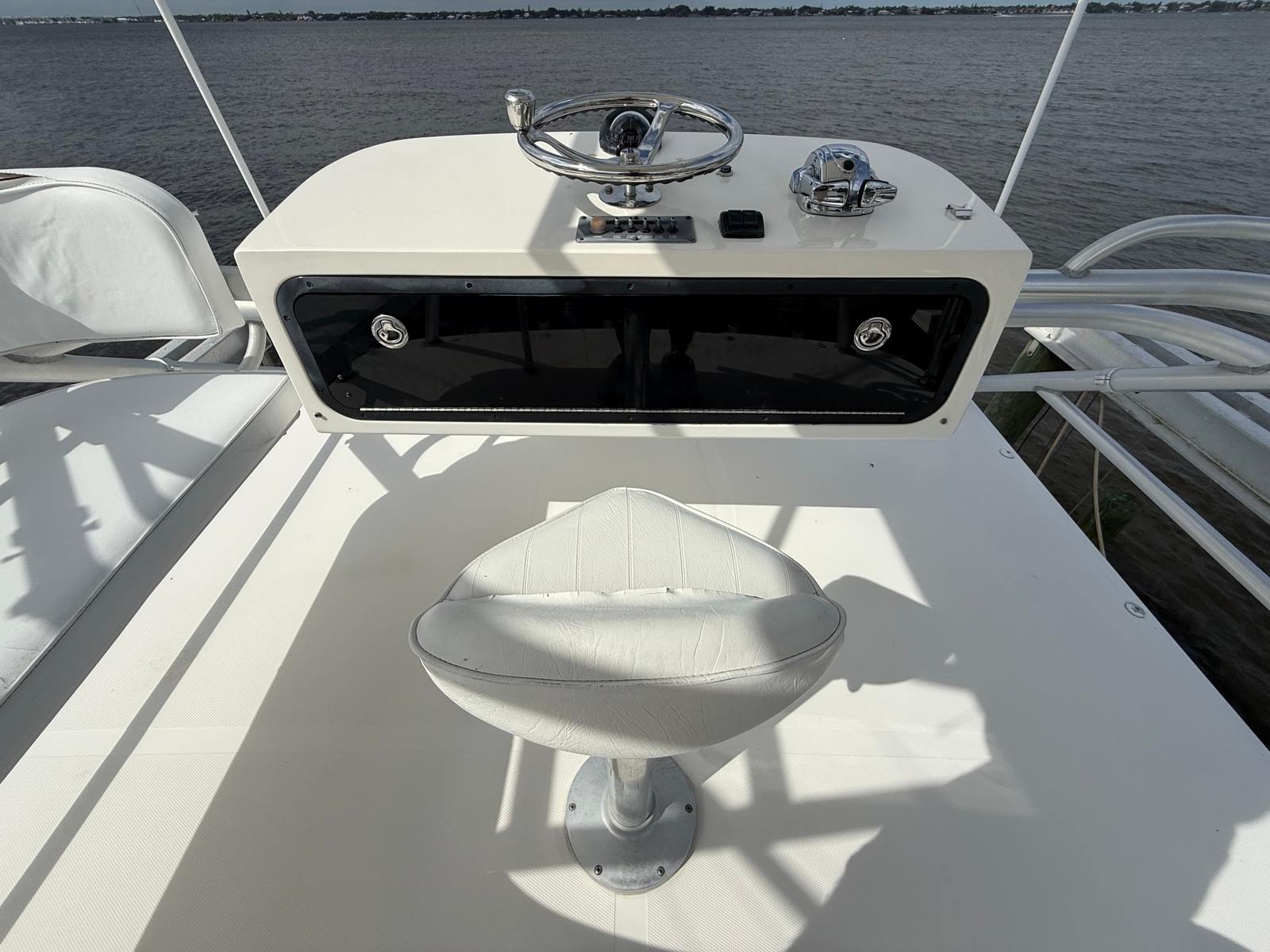 The Rampage 33 Express is powered by two robust engines, delivering a combined horsepower of 910. With only 595 engine hours, these engines are ready to provide many more years of reliable service. This impressive power ensures smooth cruising, quick acceleration, and the ability to handle a variety of water conditions with ease. Whether you’re navigating coastal waters or heading offshore, the Rampage 33 Express offers the kind of performance that makes every journey enjoyable. The twin-engine setup also enhances maneuverability, making docking and tight turns effortless, even for those new to handling a yacht of this size.