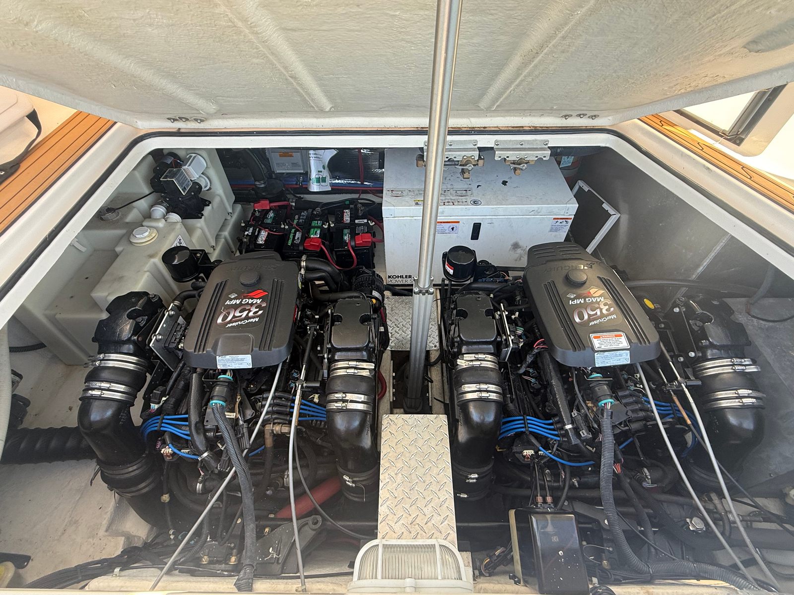 Powering this Regal yacht are two robust engines, delivering a combined 600 horsepower. With only 450 engine hours, these engines offer a compelling blend of reliability and performance, ensuring smooth cruising and responsive handling. Whether you’re navigating coastal waters or embarking on longer journeys, the 3360 Windows Express provides the power and agility you need for a thrilling ride. The twin-engine setup enhances maneuverability, making docking and tight turns effortless, while also offering peace of mind for extended trips.