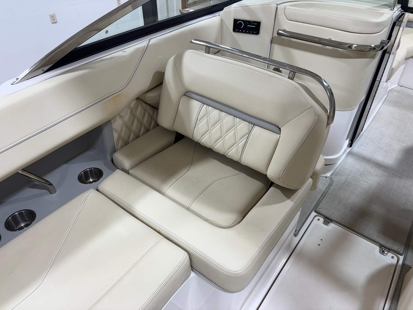 At the heart of this Bowrider is a powerful single engine delivering 350 horsepower, ensuring exhilarating acceleration and smooth cruising. With only 251 engine hours, this Regal LS6 has plenty of life left for countless adventures. The robust engine provides the muscle you need for watersports, fast cruising, or simply enjoying a spirited ride across the lake. Regal’s engineering ensures that the LS6 handles with precision and confidence, making it a joy to pilot whether you’re navigating tight turns or cruising at higher speeds. The combination of power and efficiency makes this Bowrider boat for sale a standout in its class.