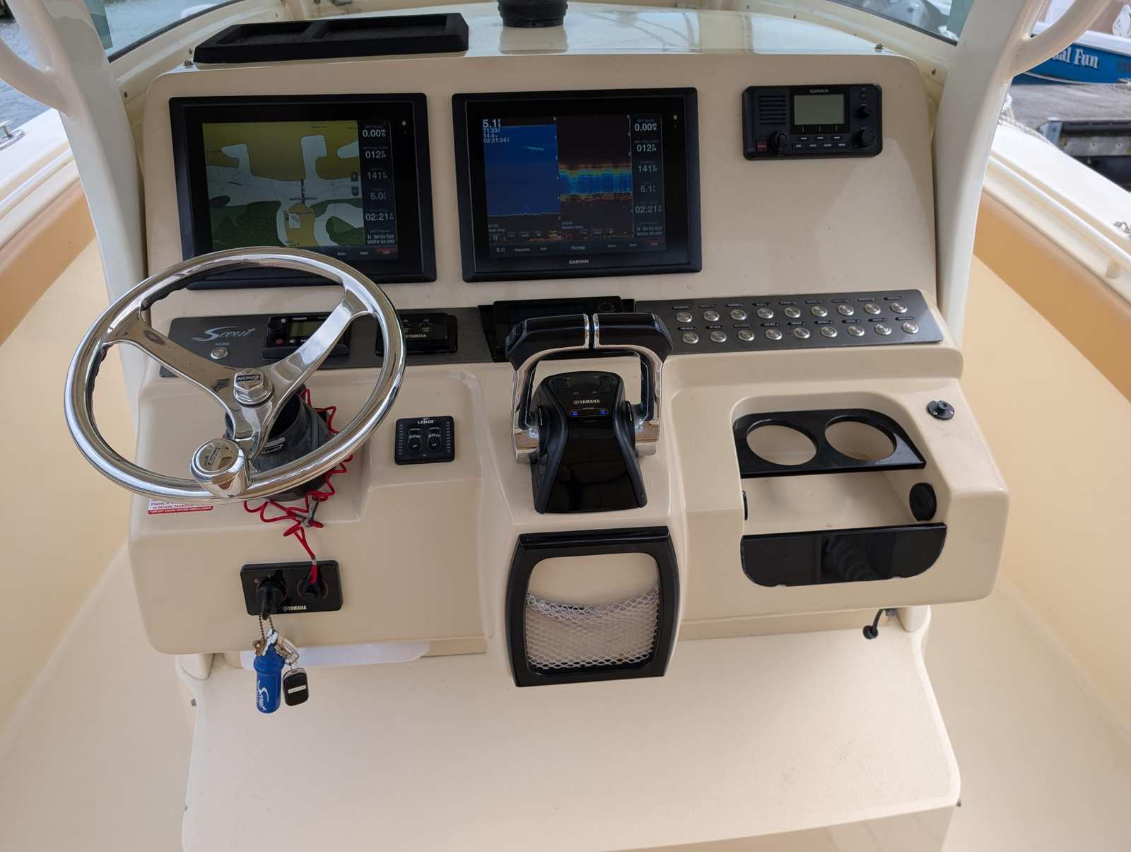 Powering the Scout 300LXF are twin engines, delivering a combined 600 horsepower for exhilarating speed and responsive handling. With 909 engine hours, these motors have proven their reliability and are ready for many more seasons of adventure. Whether you’re cruising along the coastline, heading offshore for a fishing trip, or simply enjoying a sunset ride, the Scout 300LXF’s robust performance ensures smooth and efficient travel. The dual-engine setup provides added safety and maneuverability, making docking and navigating tight spaces a breeze. This center console boat for sale is engineered to handle a variety of conditions, giving you confidence wherever your journey takes you.