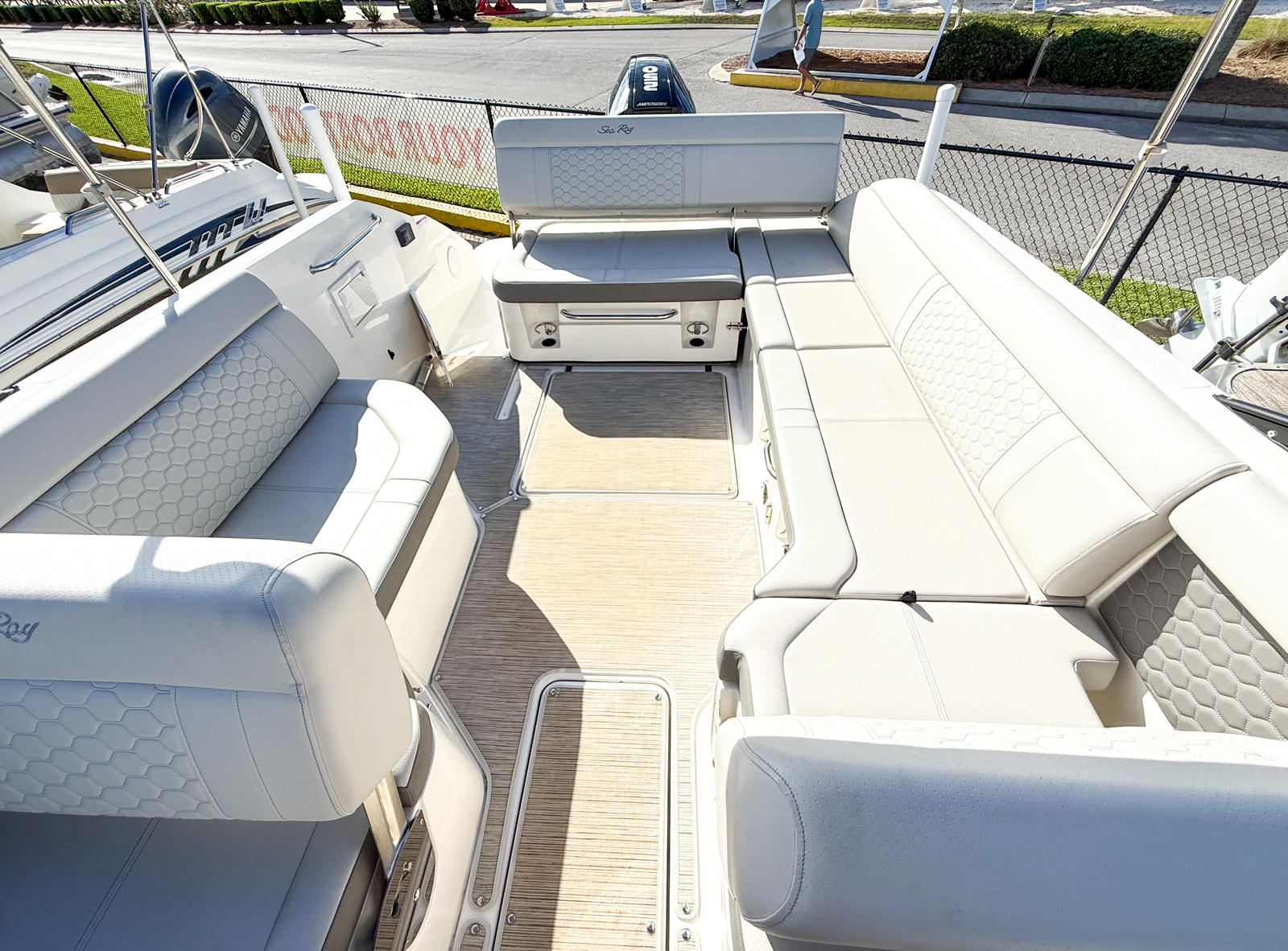 In addition to its recreational appeal, the Sea Ray SDX 250 offers practical benefits that make ownership a pleasure. The boat’s efficient engine helps keep fuel costs manageable, while its manageable length makes docking and maneuvering straightforward—even for those with limited boating experience. Generous storage compartments ensure your gear stays organized and out of the way, so you can focus on enjoying your time on the water.The SDX 250’s user-friendly helm and responsive controls make it easy to navigate busy marinas or tight docking spaces. Its durable construction and high-quality materials are built to withstand the rigors of regular use, providing peace of mind for years to come. Whether you’re planning quick getaways or extended outings, this Bowrider boat for sale is equipped to handle your needs with ease.