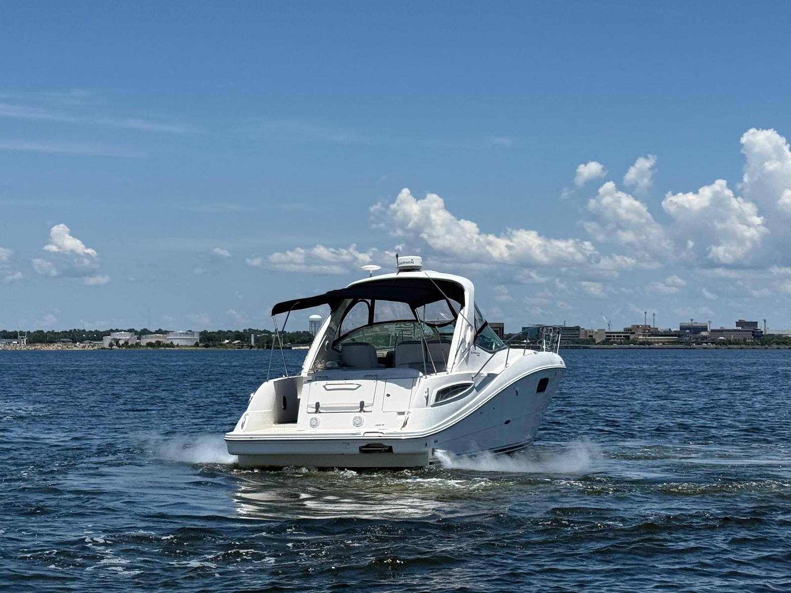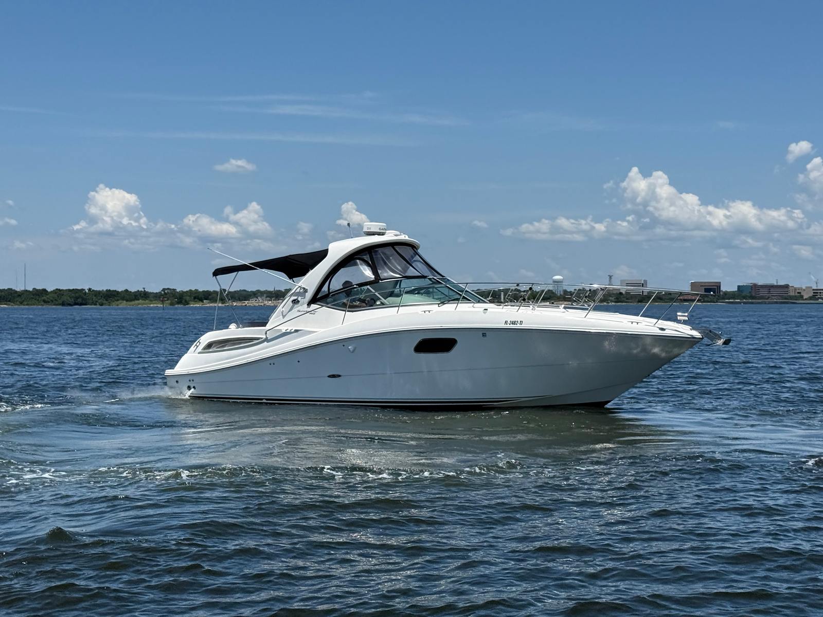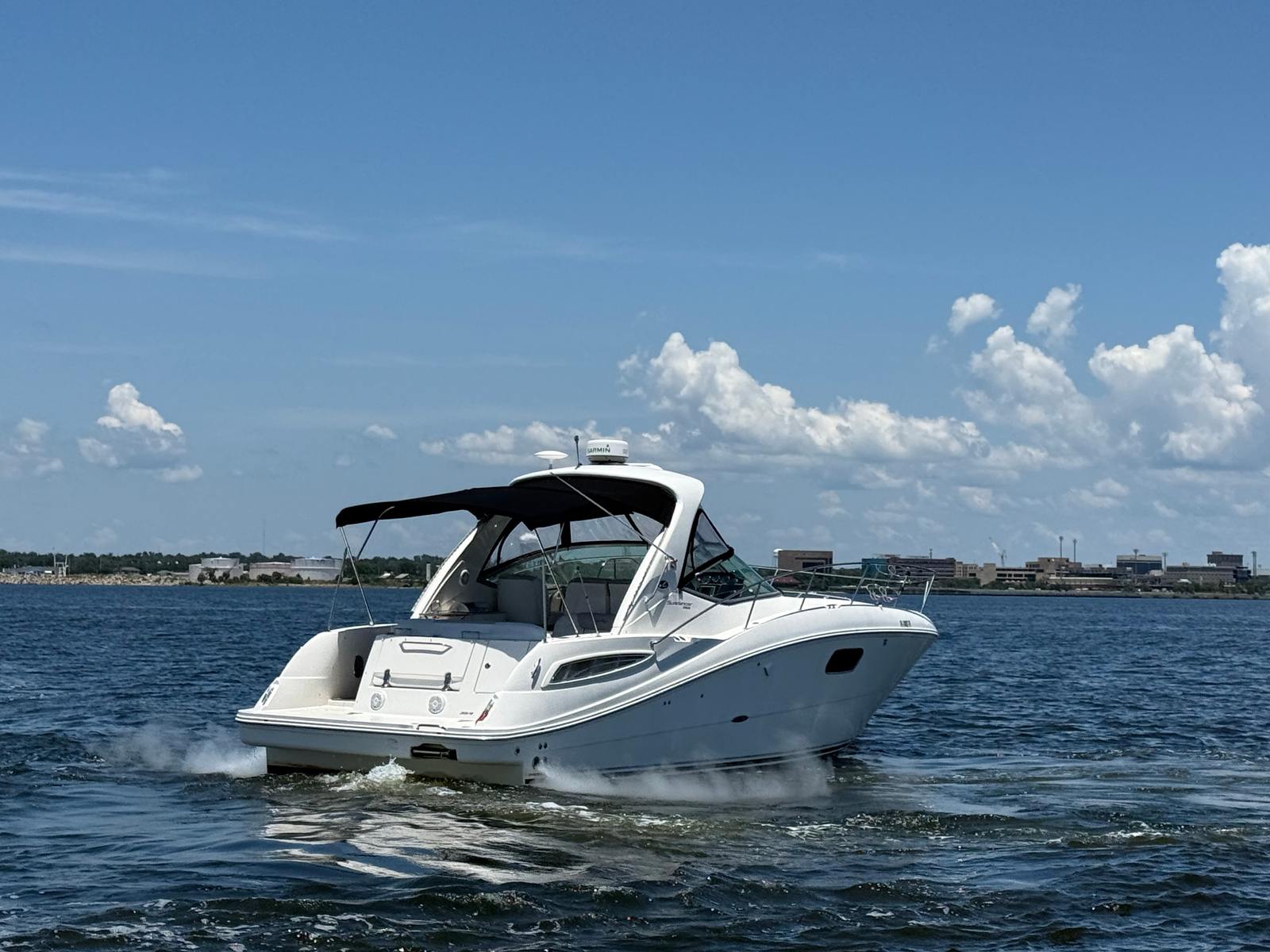 The Sea Ray Sundancer 350 is designed with comfort and convenience in mind. Its spacious cockpit and cabin layout provide plenty of room for guests to relax, socialize, and enjoy the scenery. The cruiser’s elegant interior features high-quality materials and finishes, creating a welcoming atmosphere for day trips or overnight stays. With a length of 35.5 feet, you’ll appreciate the generous deck space, perfect for sunbathing, dining, or simply unwinding with a cool drink in hand.This used cruiser boat for sale is equipped with a range of amenities that enhance your time on the water. The Sundancer 350’s thoughtful design ensures that every inch of space is utilized efficiently, offering ample storage for gear, supplies, and personal items. The twin engines not only provide impressive horsepower but also contribute to the boat’s overall reliability and ease of operation.