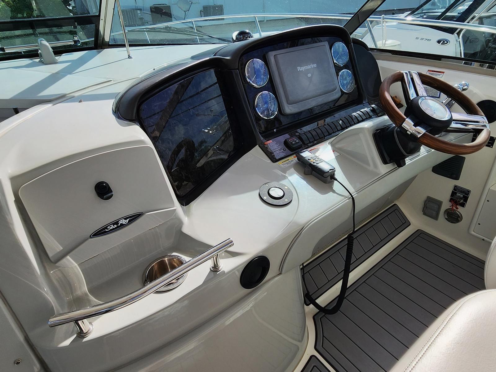 Practicality is at the heart of the Sea Ray Sundancer 390’s appeal. The twin engines not only deliver impressive power but also make maneuvering and docking straightforward, even for those new to boating. The boat’s length provides stability and ample space, while its thoughtful design ensures that storage is never an issue. Whether you’re packing for a weekend away or bringing along water sports equipment, you’ll find plenty of room to stow your gear.Fuel efficiency is another highlight, allowing you to enjoy extended trips without frequent stops. The Sundancer 390 is built for easy maintenance, so you can spend more time on the water and less time worrying about upkeep. Its durable construction and quality materials ensure that this used Sea Ray boat for sale will continue to deliver outstanding performance and comfort for years to come.