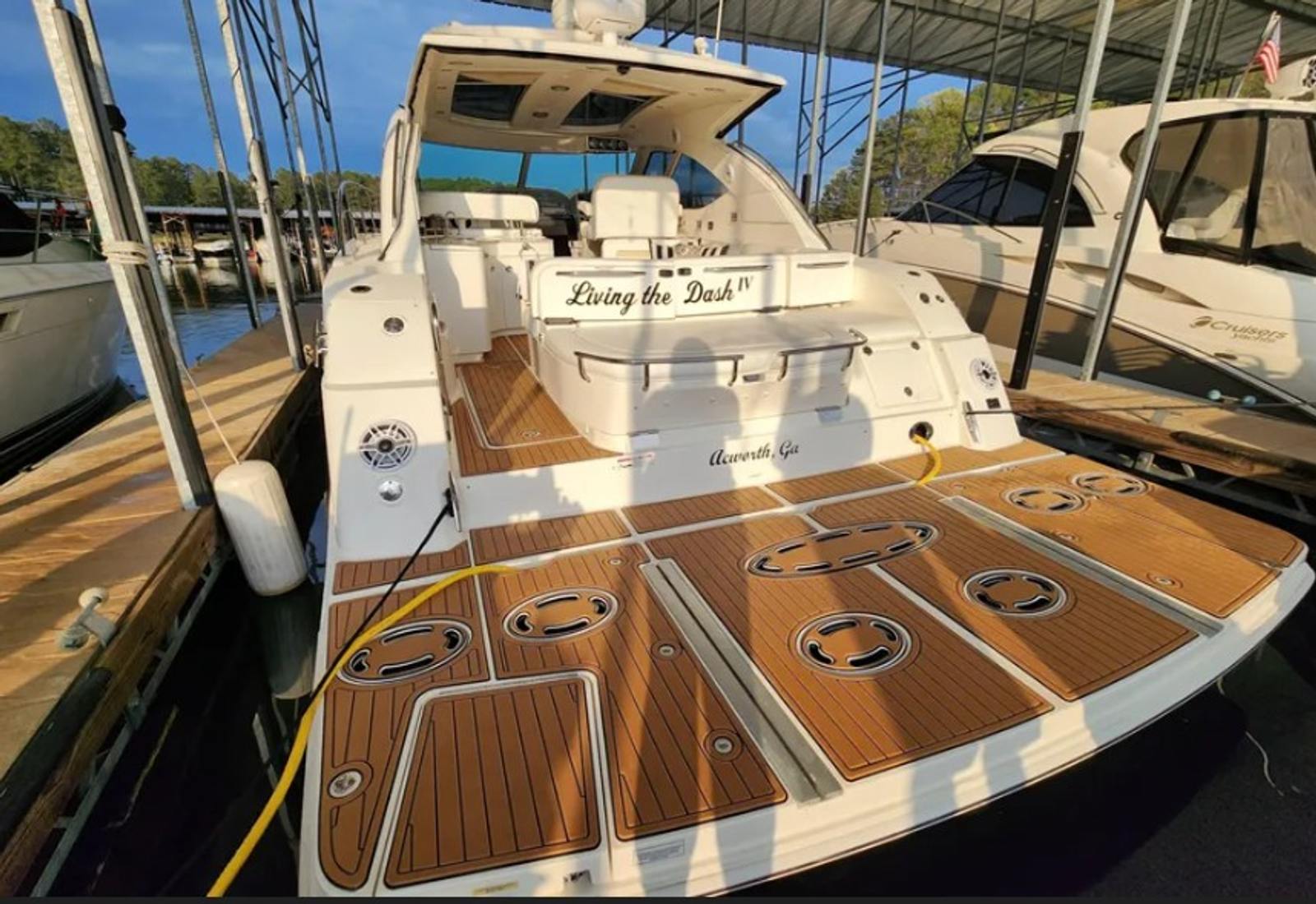 Introducing a lake kept, well-maintained 2009 Sea Ray 47 Sundancer with extensive upgrades and exceptional care throughout! This stunning cruiser combines sleek, attention-grabbing curves with thoughtful design, including Sea Ray’s unique electric windshield vent system that creates a clean, uninterrupted line from deck to hardtop. The hardtop also features two oversized electronic sunroof hatches, letting in natural light and fresh air with the touch of a button.