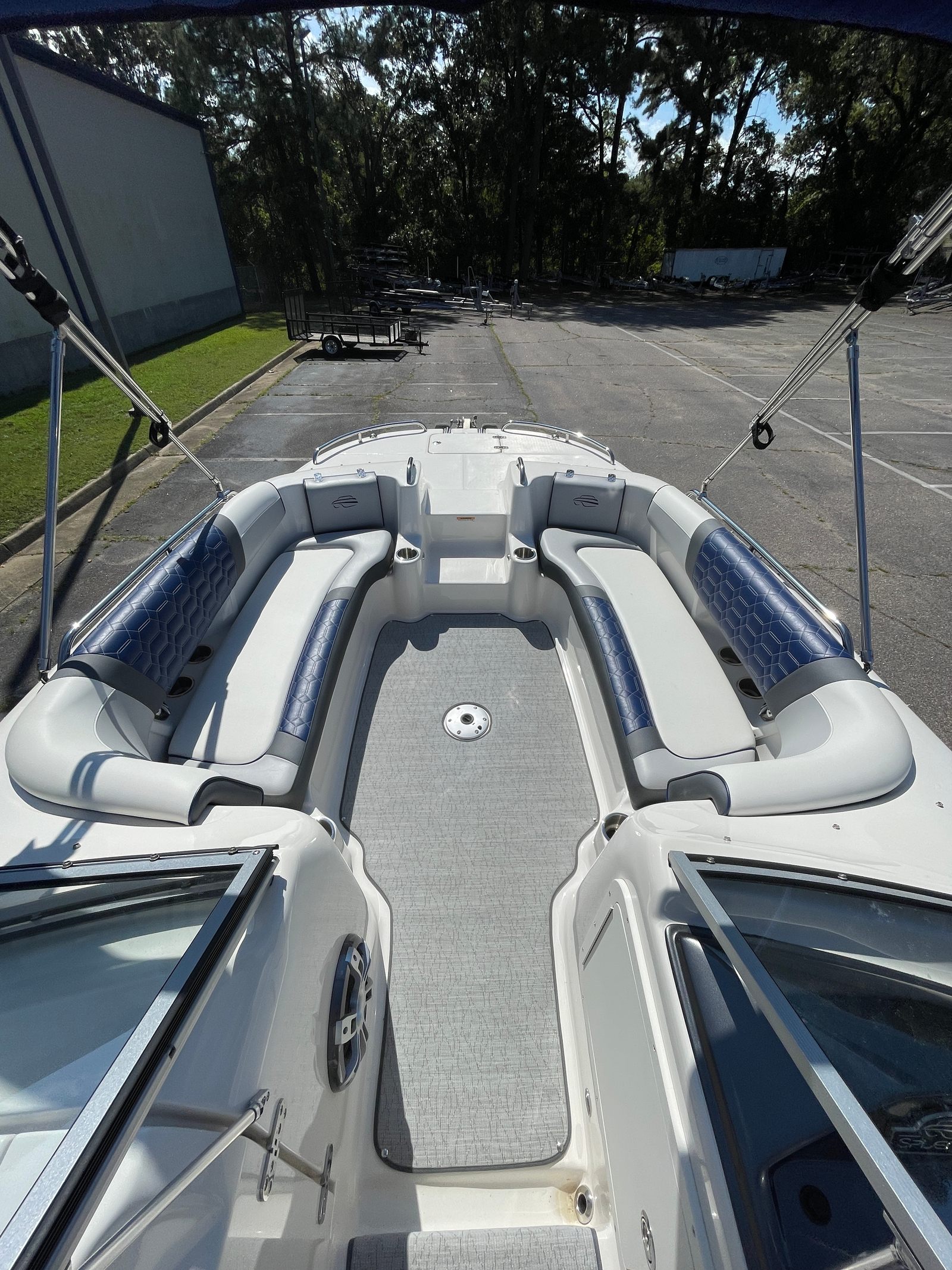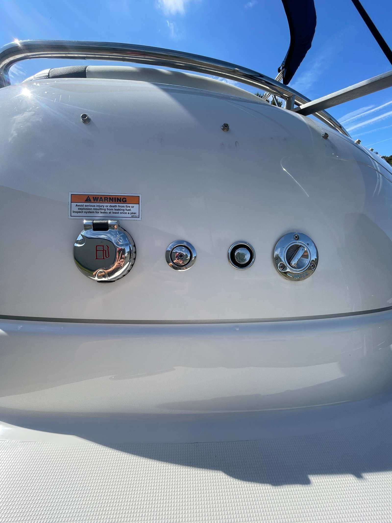 Powering the Splendor 259 Sunstar is a single engine boasting an impressive 300 horsepower. With only 30 engine hours, this deckboat offers reliable and efficient performance, ensuring you can cruise, explore, and play with confidence. The robust engine delivers smooth acceleration and responsive handling, making it easy to navigate both open waters and tight marina spaces. Whether you’re towing water toys, heading out for a day of fishing, or simply enjoying a leisurely cruise, the Splendor 259 Sunstar’s performance capabilities will exceed your expectations.